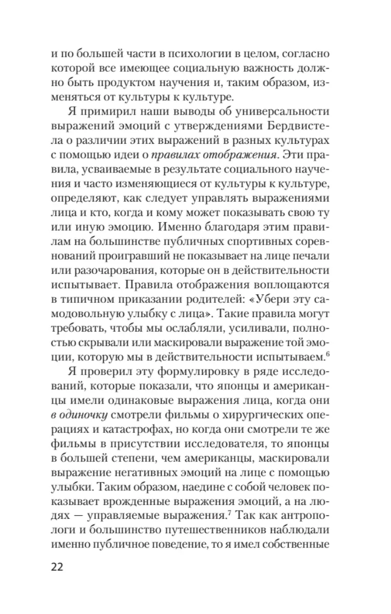 Что играет решающую роль в управлении поведением? Что читается по лицам и определяет качество нашей жизни? Что лежит в основе эффективного общения? Что мы испытываем с самого раннего детства? На все эти вопросы ответ один — эмоции. Эмоции явные, скрытые, контролируемые. Распознавать, оценивать, корректировать их на ранних стадиях у себя и у других научит книга Пола Экмана, книга tour de force. Откройте для себя ценнейшее пособие для изучающих психологию, связи с общественностью, менеджмент. Издание изобилует интересными фактами, случаями из жизни и конкретными практическими рекомендациями, а удачная подборка фотографий превосходного качества не оставит равнодушными даже самых строгих читателей.