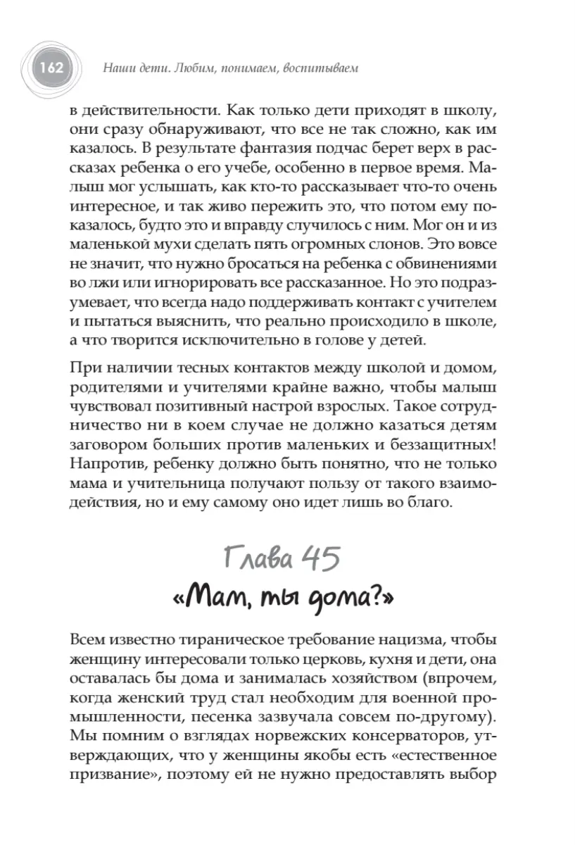 Книга известного норвежского психолога "Наши дети" давно стала классикой воспитания во всем мире. Осе Грюда Скард предлагает родителям посмотреть на мир глазами своих детей, чтобы лучше их понять и почувствовать. Ребенок, которого растят в атмосфере понимания и уважения, будет ощущать в родительском доме счастье и безопасность."Темы, которым посвящены главы книги «Наши дети», являются очень жизненными. Вы узнаете, как научить ребенка плавать, если он боится воды, и как воспитывать ответственность, и зачем устраивать дома семейный совет...",–– отмечает известный санкт-петербургский психолог Мария Осорина. Автор рассматривает простые, на первый взгляд, ситуации, с которыми ежедневно сталкивается каждый родитель, показывает их воспитательную ценность и раскрывает секреты воспитания спокойных и уверенных в себе детей.