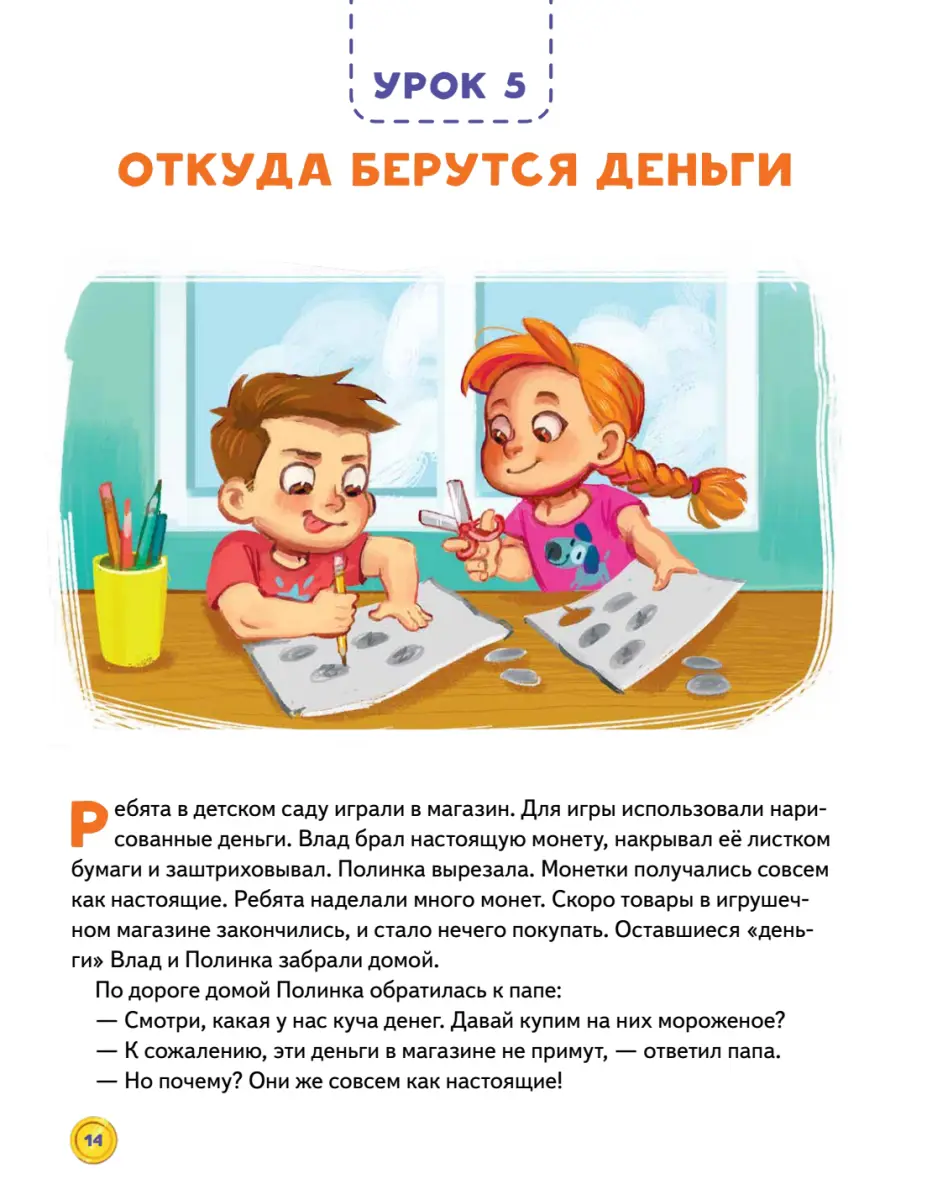 Внутри книги вы найдёте уроки по основам финансов и задания с наклейками для закрепления материала. Примерами послужат истории из жизни обычных детей Влада и Полины, которым помогает их друг и консультант по финансовой грамотности – умный Финграм.