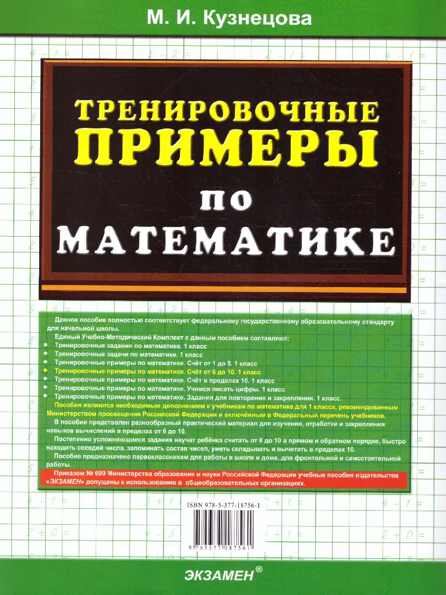 Математика. 1 класс. Счет от 6 до 10. Тренировочные примеры. ФГОС новый