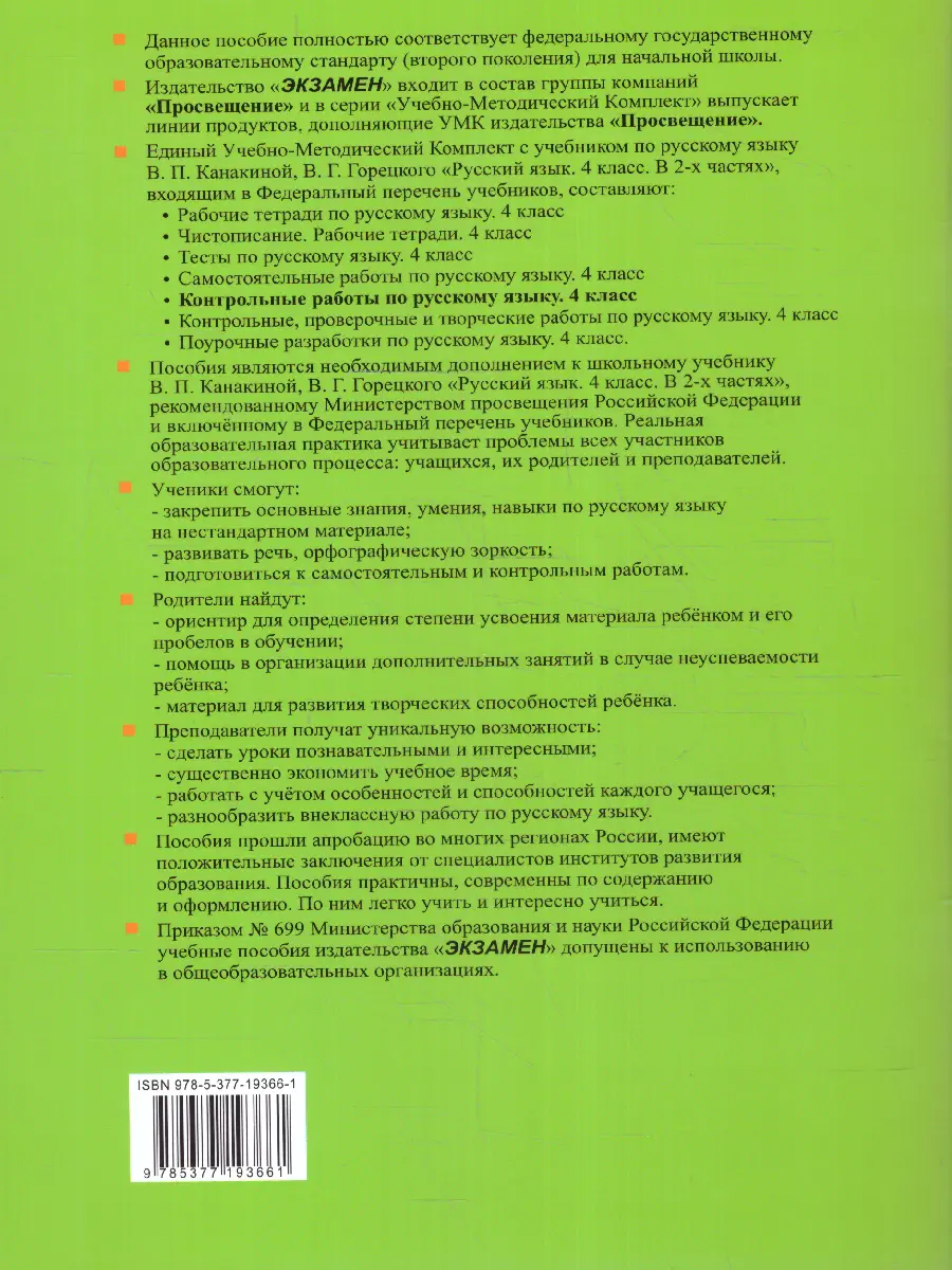 Данное пособие полностью соответствует федеральному государственному образовательному стандарту (второго поколения) для начальной школы. Универсальные контрольные работы по русскому языку составлены с учётом компетентностного подхода в обучении, соответствуют требованиям ФГОС и ориентированы на работу по учебникам русского языка, включённым в Федеральный перечень.