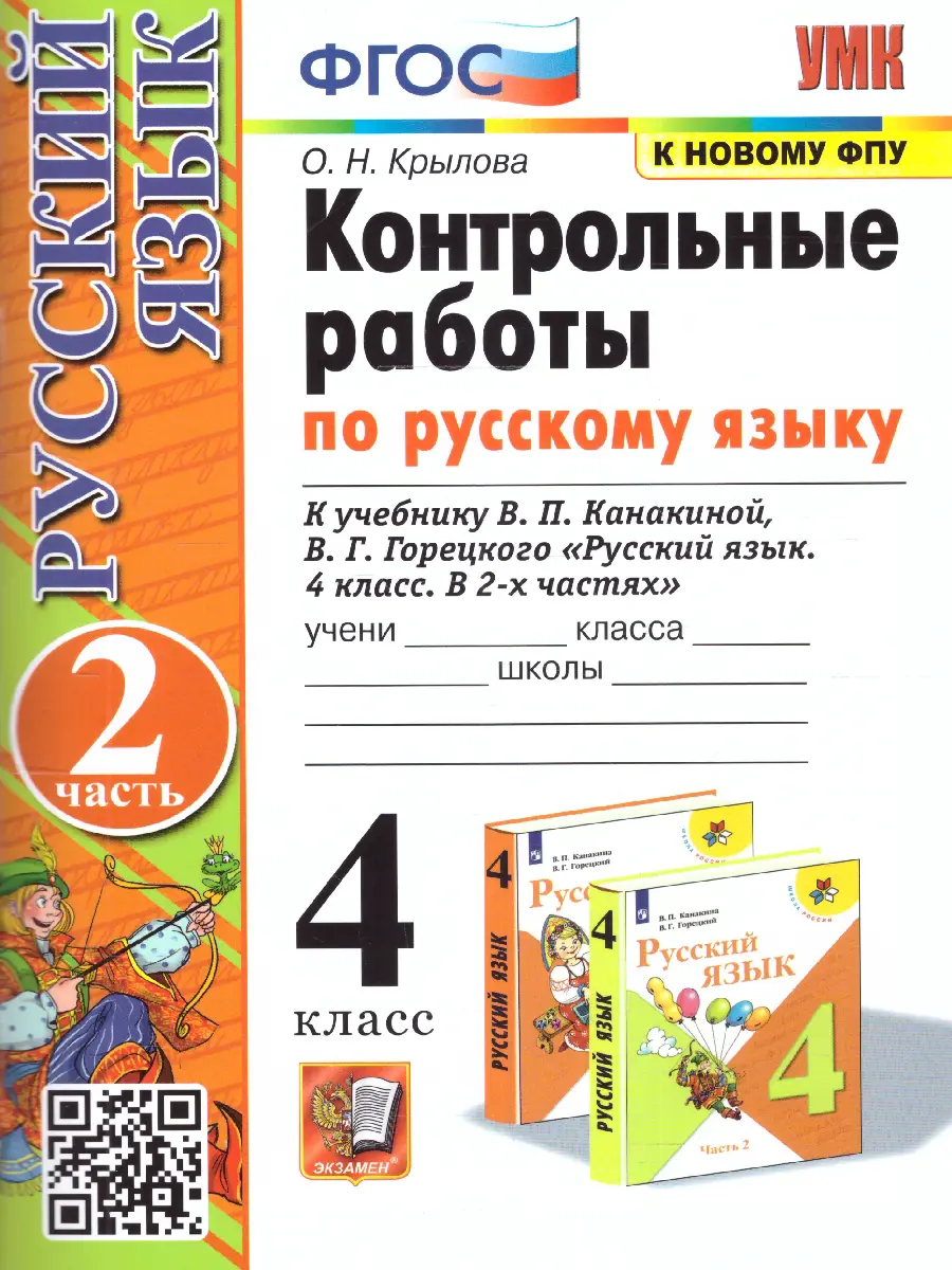 Русский язык. 4 класс. Контрольные работы. Часть 2. Школа России. (к новому ФПУ)