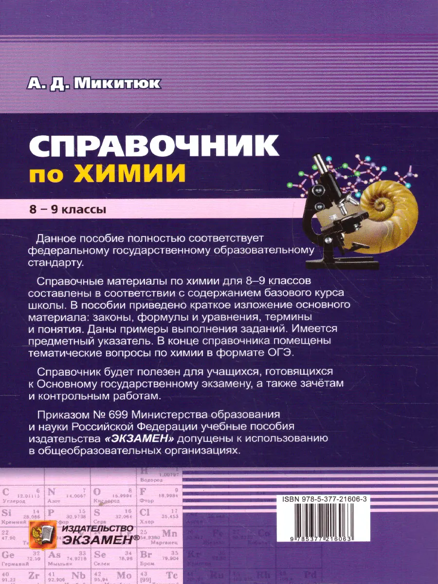 Справочные материалы по химии для 8-9 классов составлены в соответствии с содержанием базового курса школы. В пособии приведено краткое изложение основного материала: законы, формулы и уравнения, термины и понятия. Даны примеры выполнения заданий. Имеется предметный указатель. В конце помещены тематические вопросы по химии в формате ОГЭ.