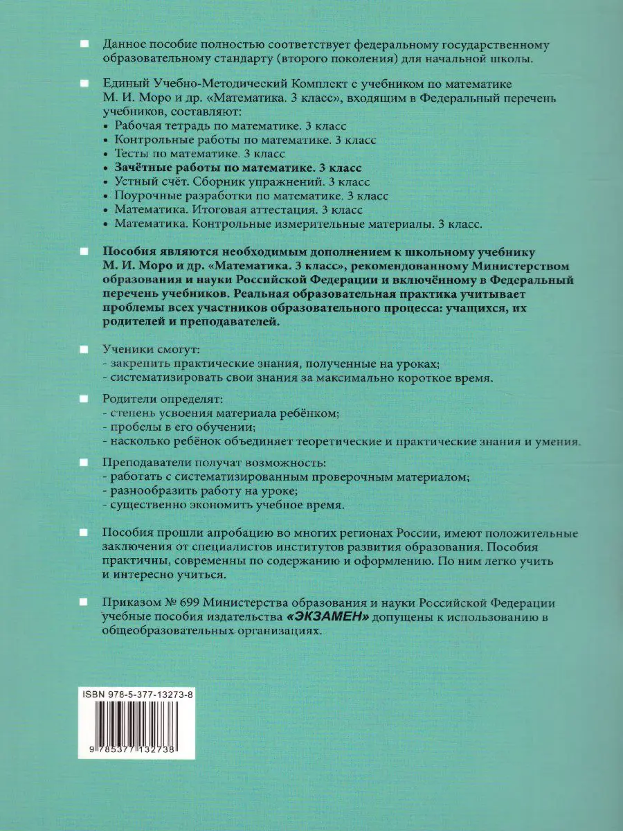 Данное пособие полностью соответствует федеральному государственному образовательному стандарту (второго поколения) для начальной школы. Пособие адресовано учителям начальной школы, родителям младших школьников, а также учащимся начальной школы для самостоятельных занятий и может быть использовано при работе с комплектом учебников по математике М.И. Моро и др. "Математика. 3 класс. В 2 ч.".