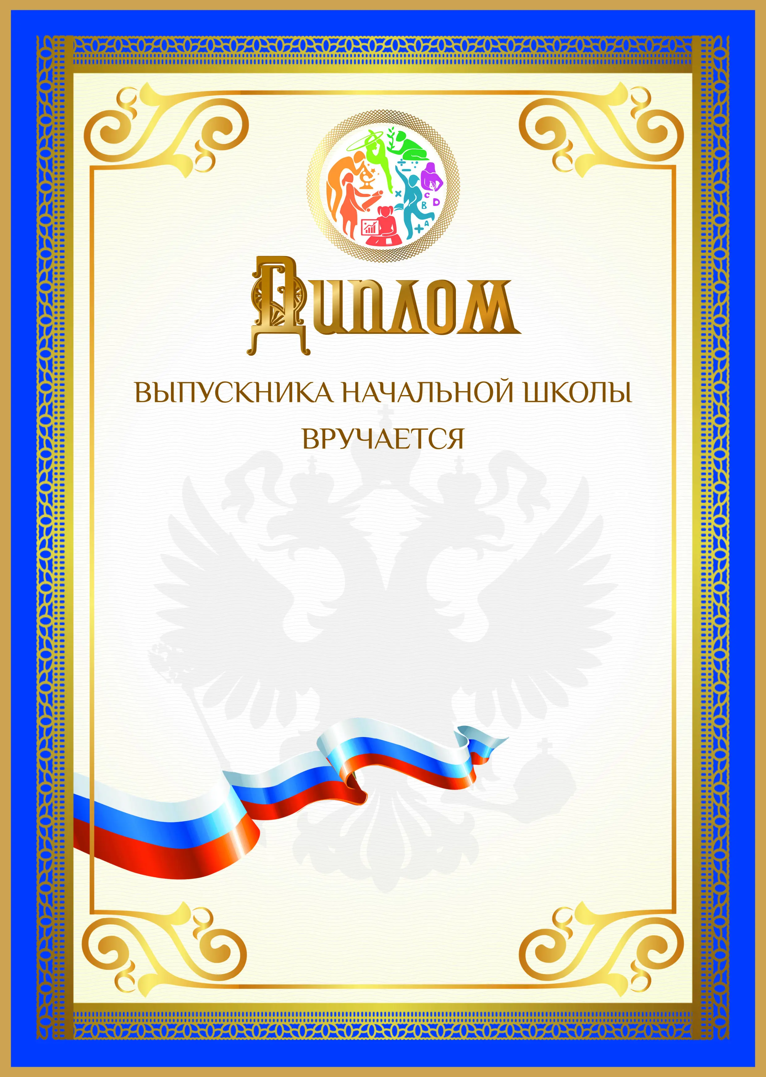 Диплом. Диплом выпускника начальной школы. Лента триколор. Синий периметр