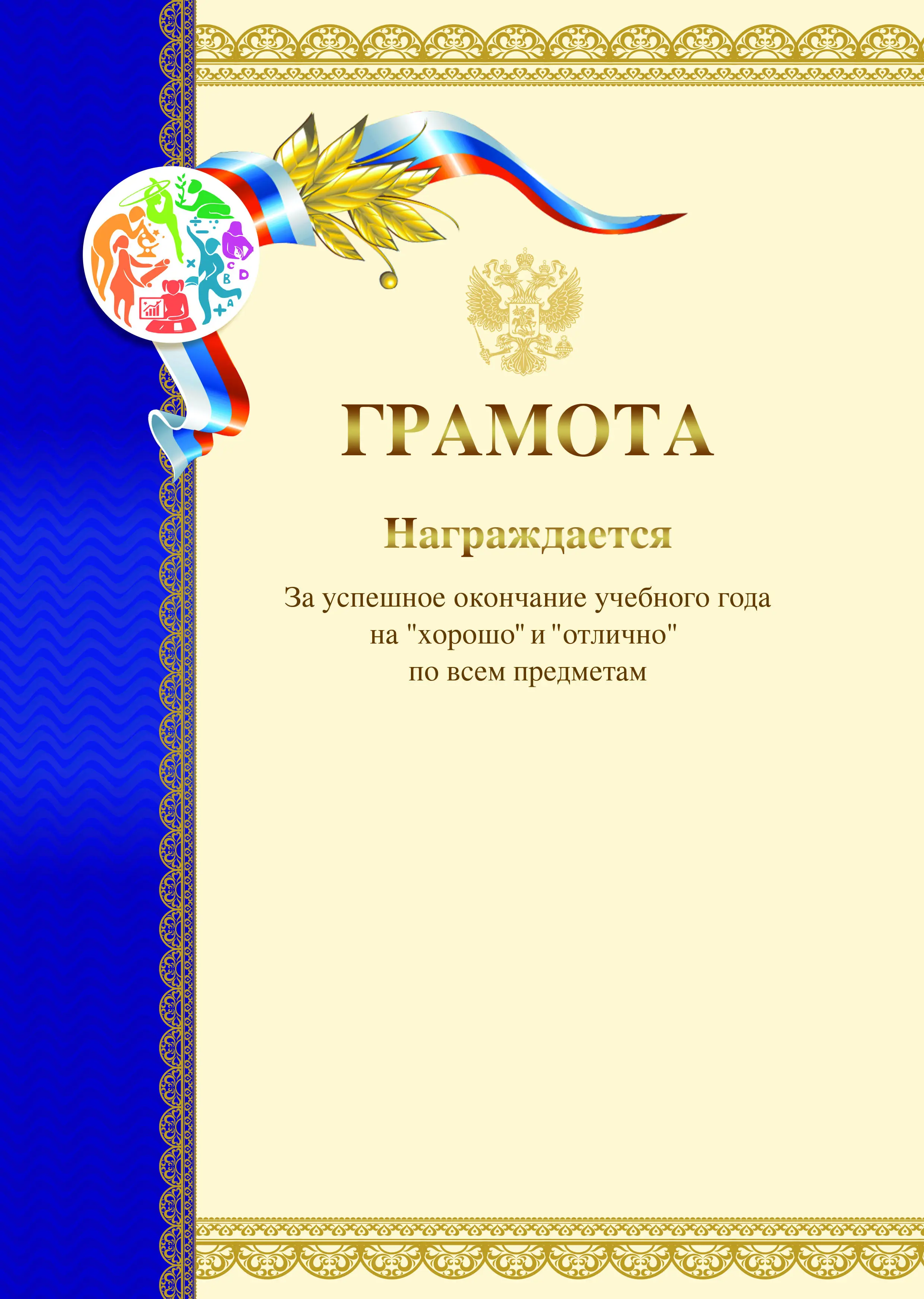 Грамота. На "хорошо" и "отлично". С орлом. Лента триколор