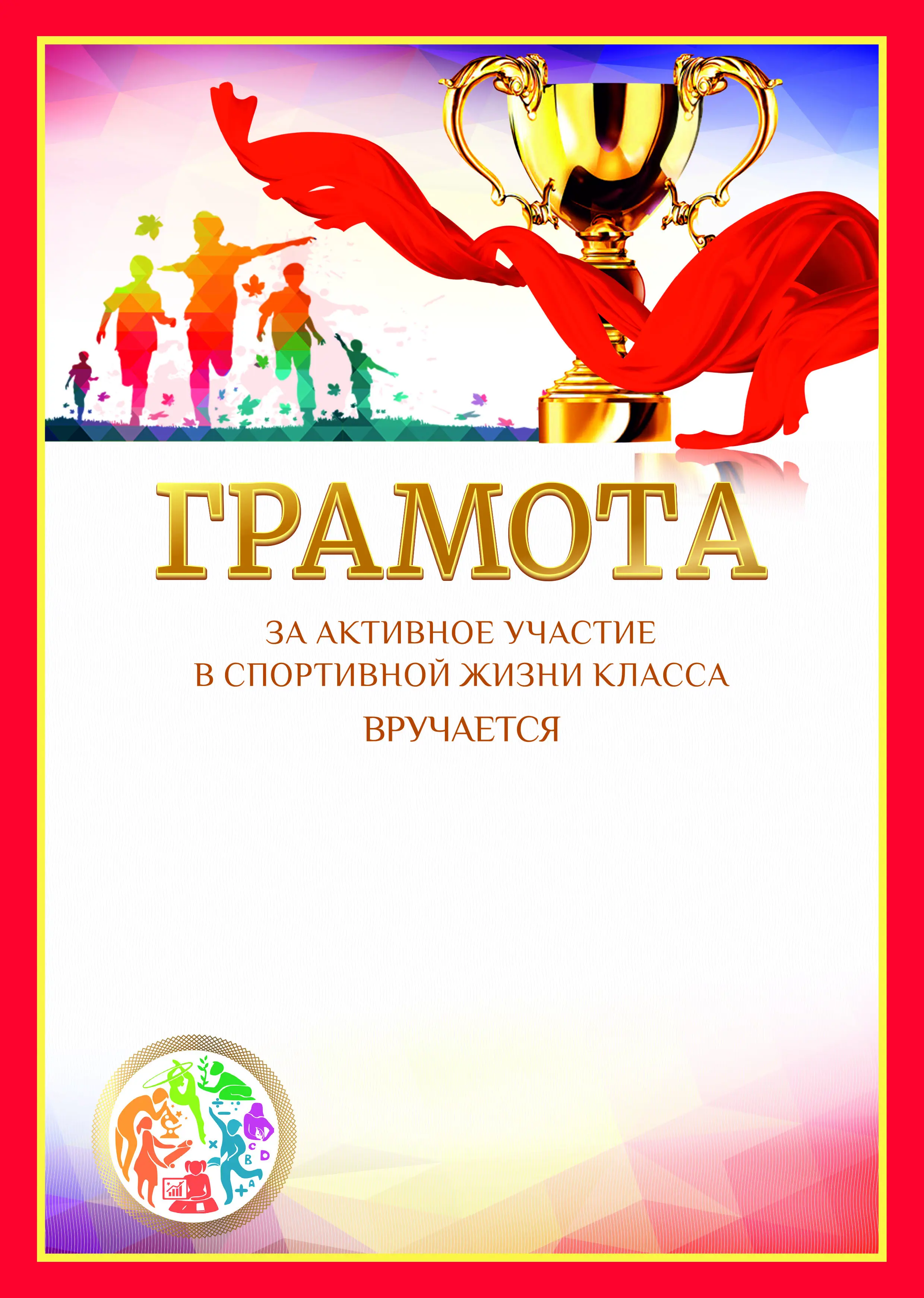 Грамота. За активное участие в спортивной жизни класса. Бело-красная