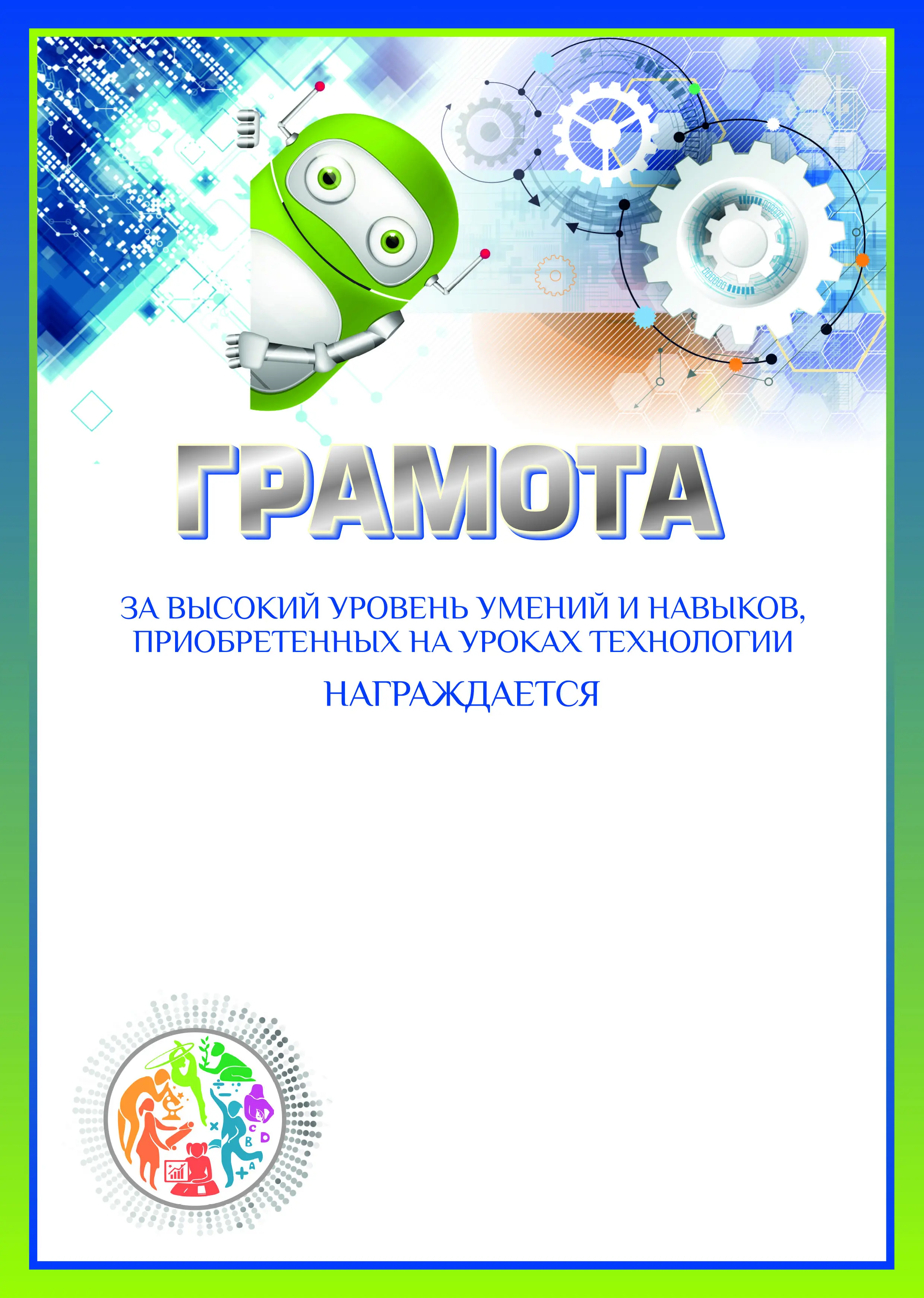 Грамота. За высокий уровень умений и навыков, приобретенных на уроках технологии. Синяя. (Комплект 10 шт.)