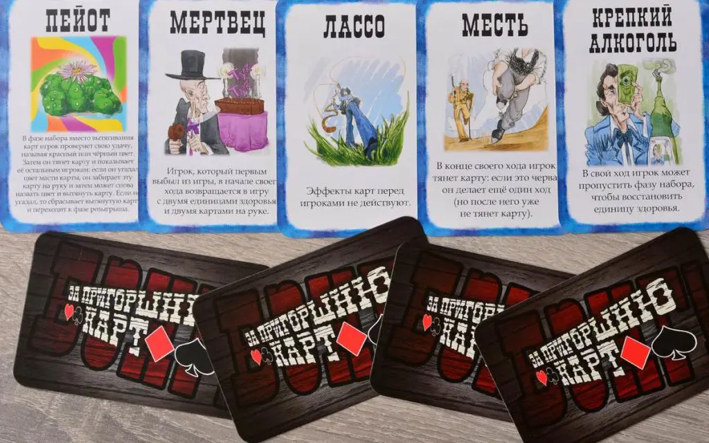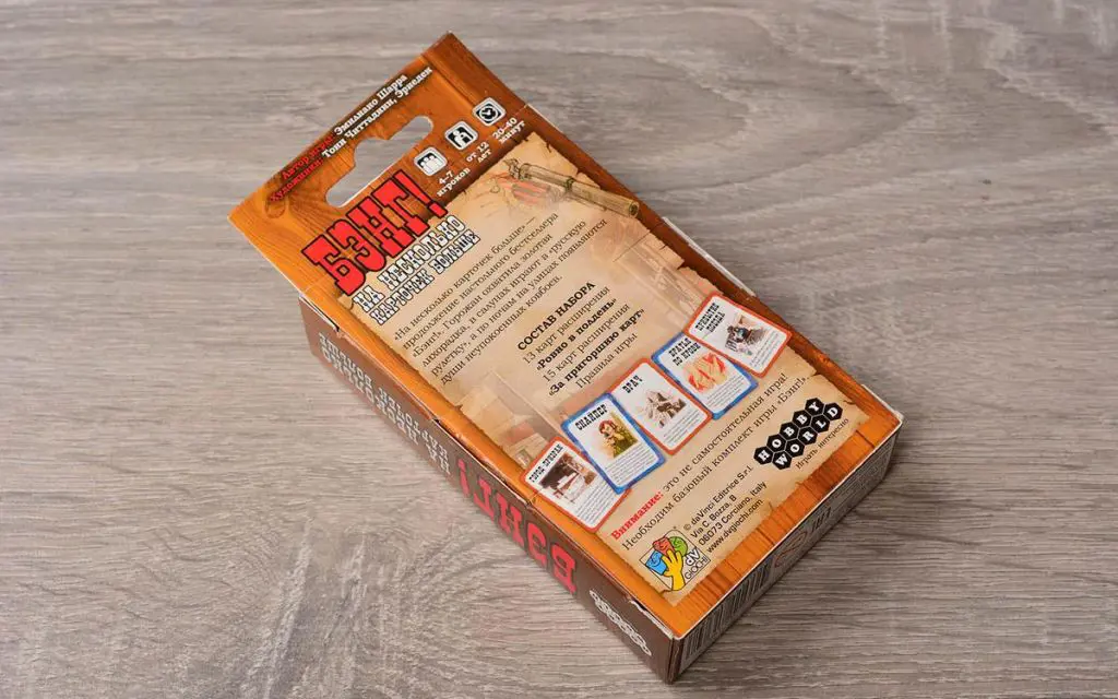 Настольная игра «Бэнг» — остросюжетный и закрученный вестерн, сочетающий в себе лучшее от карточных игр и Мафии. Здесь вам понадобится распознавать блеф и использовать дедукцию, чтобы раскусить, кто есть кто в этой хитросплетённой перепалке. Напряжённая атмосфера, а также возможность подействовать не только словом, но и револьвером, подстёгивает игроков быть хитрыми и смекалистыми!
