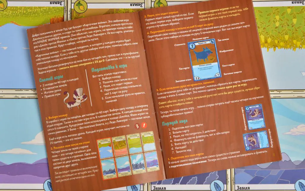 «Время приключений: Карточные войны» — самая эпичная настольная игра, какую можно найти в землях Ууу... да и не только там! Настольное сражение развернётся на синих равнинах и в кукурузных полях. Обрушь церебральный шторм на легионы початочков, столкни на поле боя велорыцарей и зернотавров, а потом отправь свинью обглодать кукурузные стебли. Сразись со своим другом, как Финн и Джейк, и выясни, кто из вас круче!