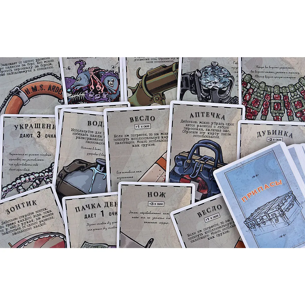 Один ход — это один день в море. Утром вы раздаёте припасы, днём совершаете действия. Вечером открываете карты навигации, и они решают вышу судьбу: кто-то упадёт за борт, кто-то пострадает от жажды.