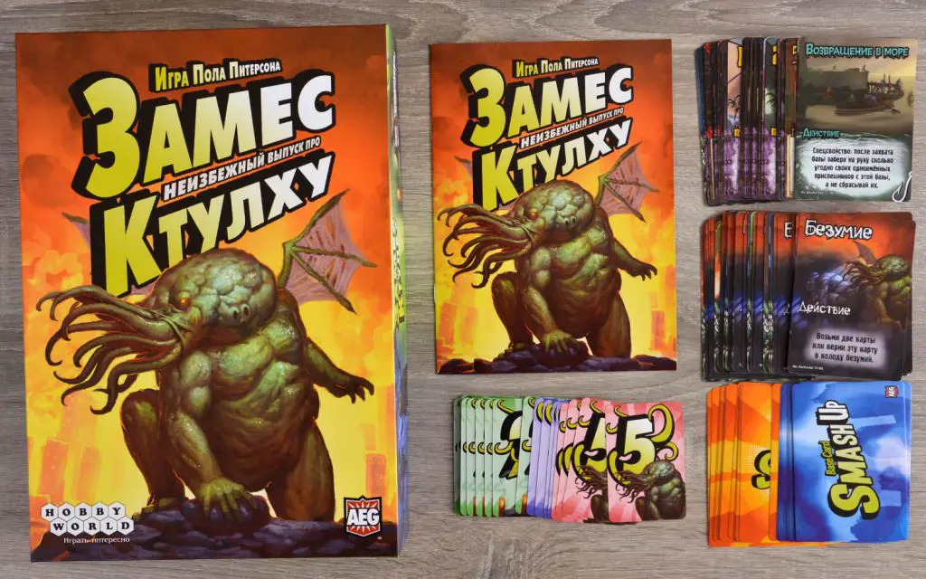 «Неизбежный выпуск про Ктулху» — это ужасные Старцы из антарктических льдов, вонючие рыболюди Инсмута, безумные учёные из Мискатоникского университета и, разумеется, старые добрые культисты Того, Кто Спит в Р’льехе. Чтобы уж точно сделать всё как надо, мы добавили сюда карты безумий, которые каждая из фракций использует по-своему. Но помни, что у всякого могущества есть своя цена (не парься, это шутка).