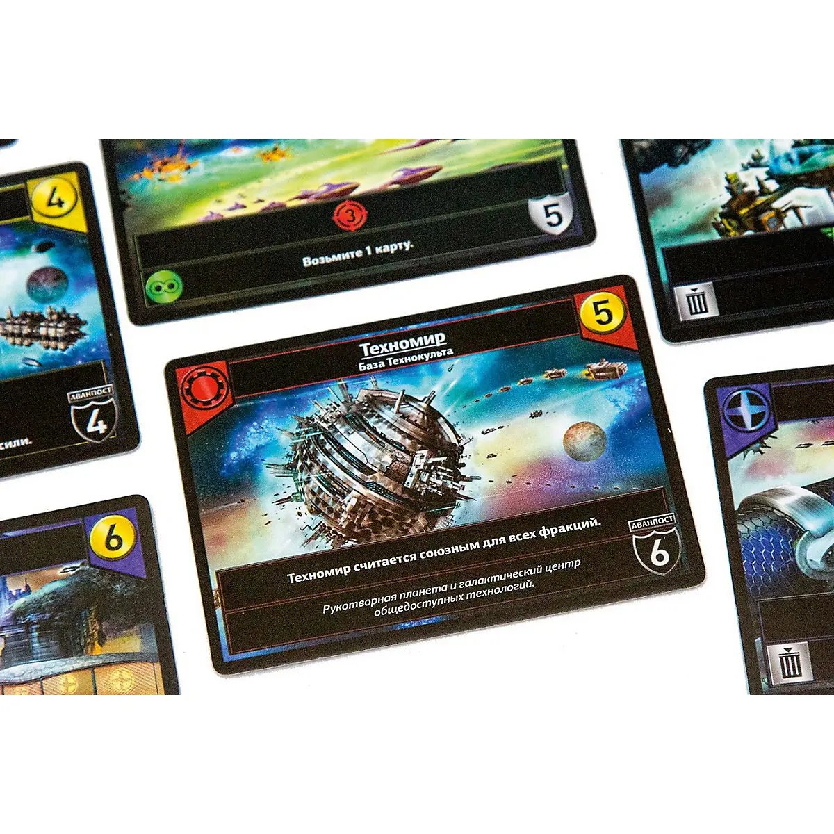 «Звёздные империи» — колодостроительная игра для 2-6 человек на космическую тематику. Игрокам необходимо атаковать друг друга, для снижения очков влияния. Используя различные комбинации карт, игроки сами выбирают свою стратегию во время партии, вырабатывают защиту от атак противника и ищут бреши в обороне противника. Можно идти разными путями, пользоваться силой, хитростью или богатством, но всем одинаково понадобятся мастерство и немного удачи!
