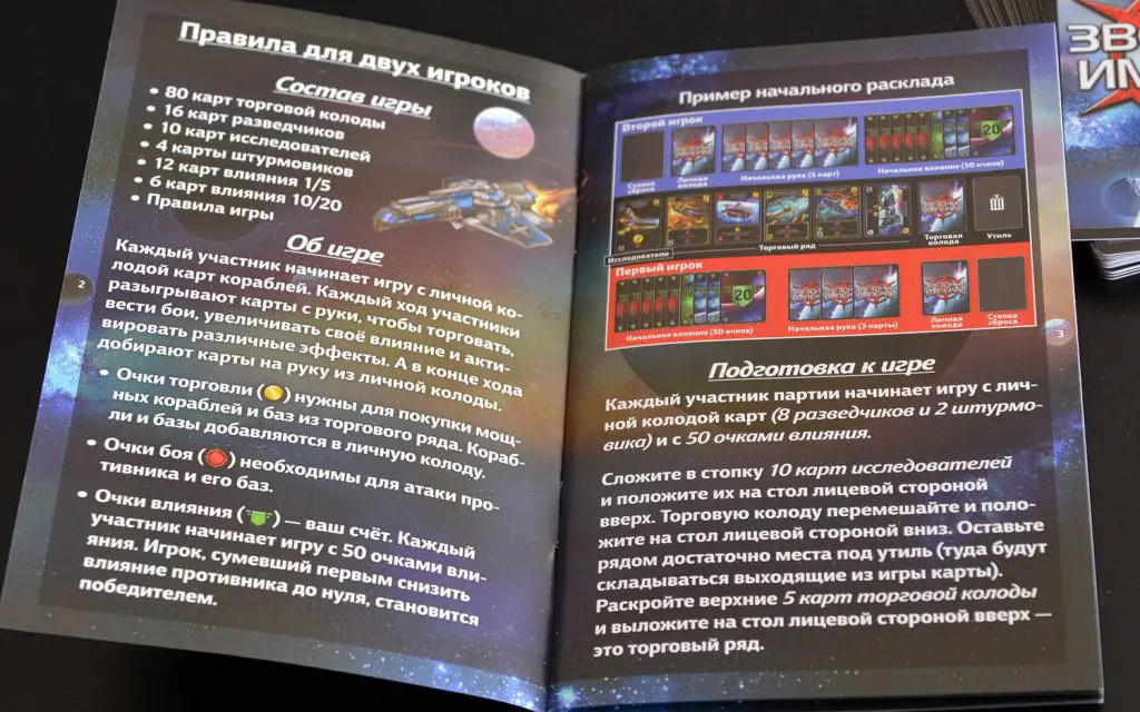 «Звездные империи» — колодостроительная карточная игра в жанре научной фантастики. Собирайте космическую армаду, возводите военные базы и цитадели, торгуйте на звёздных рынках и отправляйте устаревшие корабли на переплавку. Вступите в сражение за передел космоса, и да пребудут с вами мастерство и удача!