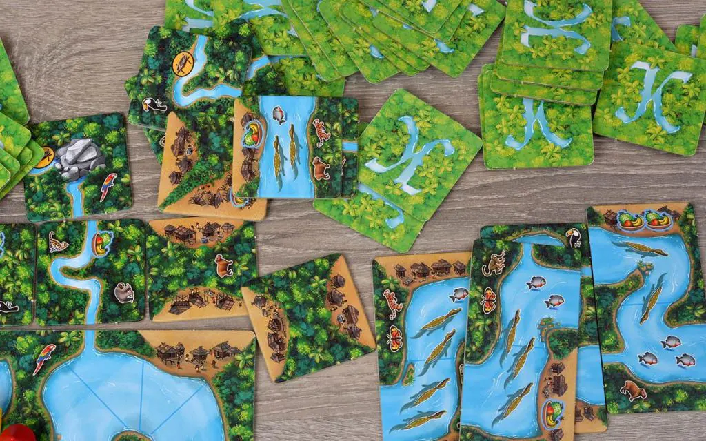 Участники по очереди выкладывают на стол квадраты: тем самым они постепенно открывают новые деревни и притоки, углубляются в джунгли и спускаются ниже по реке. Свои фишки исследователей игроки ставят в деревнях и на притоках, а стоянки размещают в джунглях. Не менее важно двигать свою лодку вниз по Амазонке, чтобы опередить других игроков. Вс ̧ это приносит очки — как во время игры, так и в конце партии при финальном подсчёте.