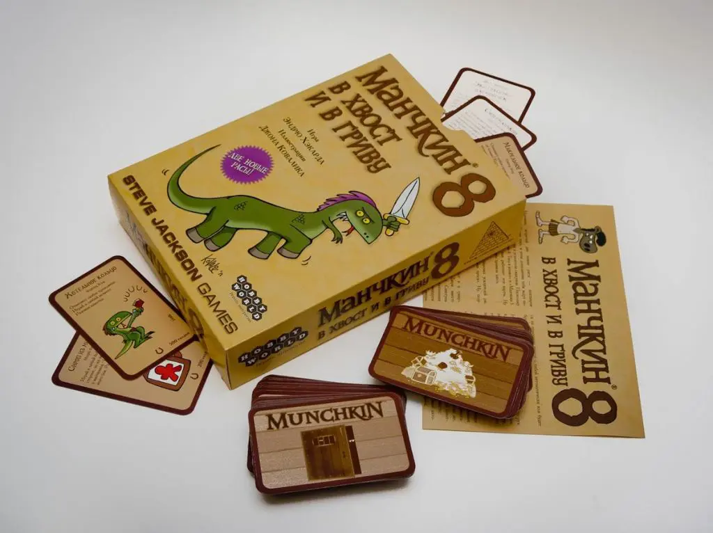 Дополнение Hobby World «Манчкин 8. В хвост и гриву» вносит в базовую версию игры фэнтезийных героев, трофеев и юмора – все, чтобы добраться до высшего уровня в игре и победить. Каждая карточка оформлена оригинальным рисунком.
