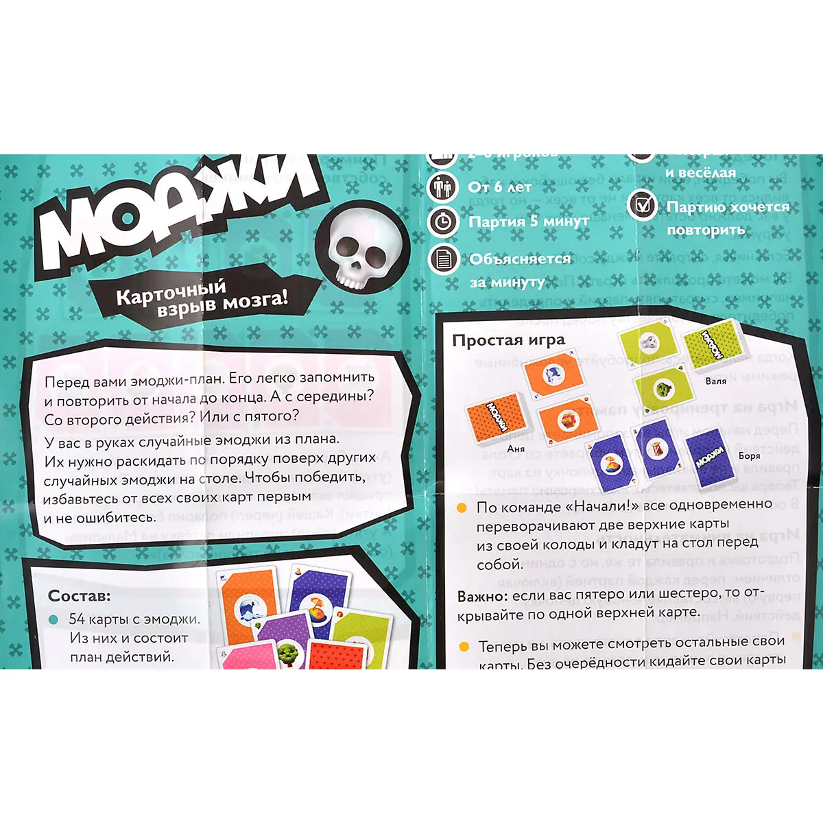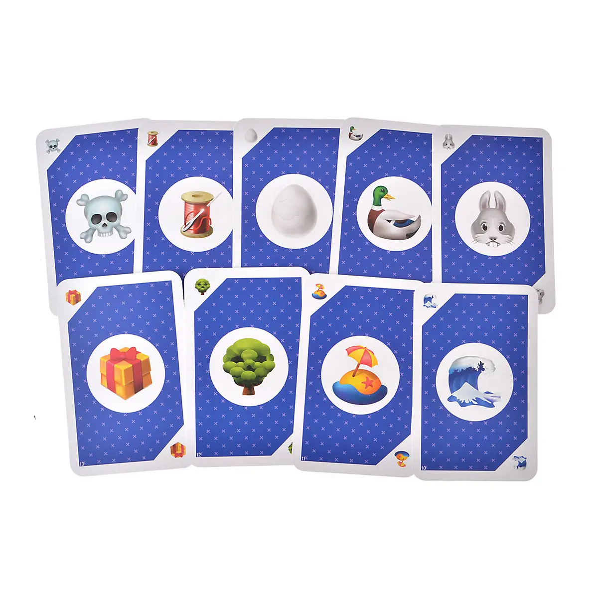 У вас в руках случайные эмоджи из плана. Их надо раскидать по порядку поверх других случайных эмоджи на столе. Избавьтесь от всех своих карт первым и не ошибитесь.
