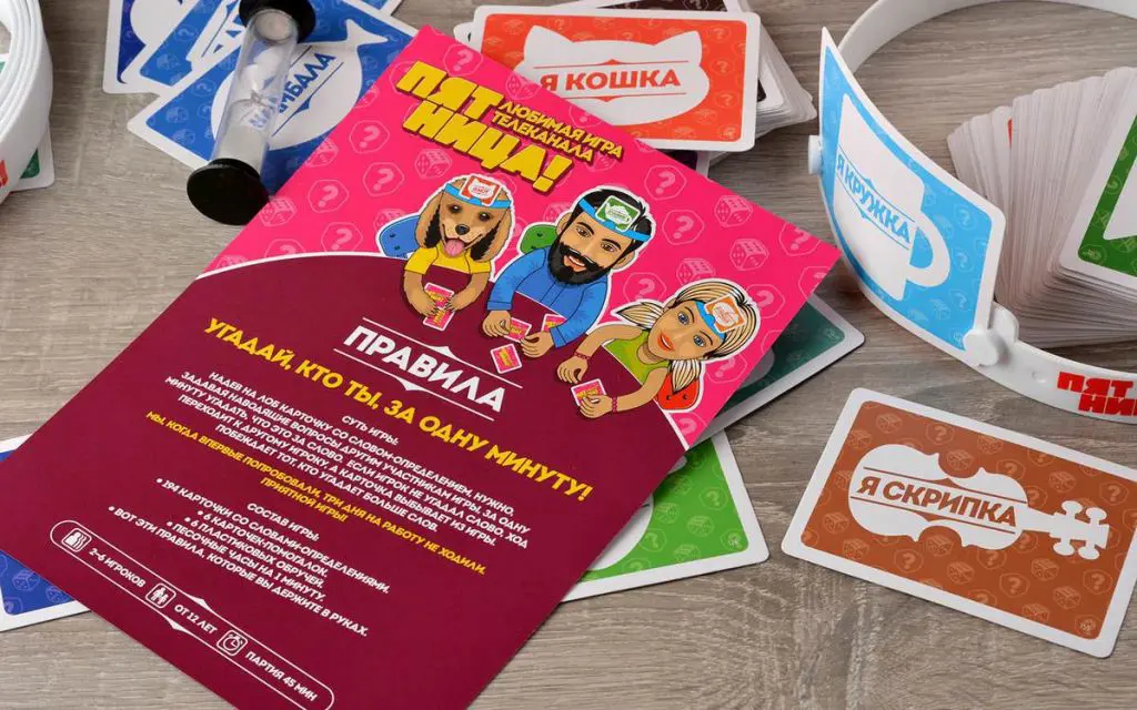 Надев на лоб карточку со словом-определением, нужно за одну минуту угадать, что это за слово, задавая другим участникам игры наводящие вопросы. Если игрок не угадал слово, ход переходит к другому игроку, а карточка выбывает из игры. Побеждает тот, кто угадает как можно больше слов.