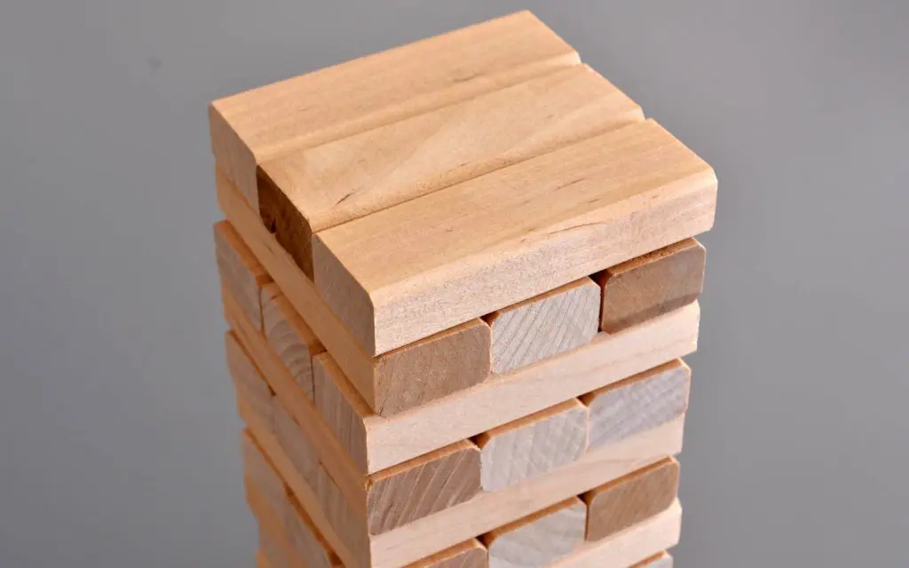 Поставьте брусок наверх башни поперёк ряда. Если она ещё не упала – передайте ход следующему игроку.