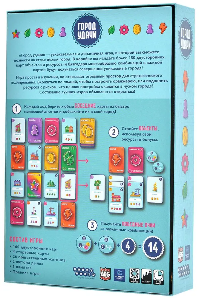“Город удачи” – настольный градостроительный симулятор, благодаря которому город вашей мечты может быть возведён прямо у вас на столе! Здесь, как и на любой стройке, придётся хорошенько попотеть, за дело!
