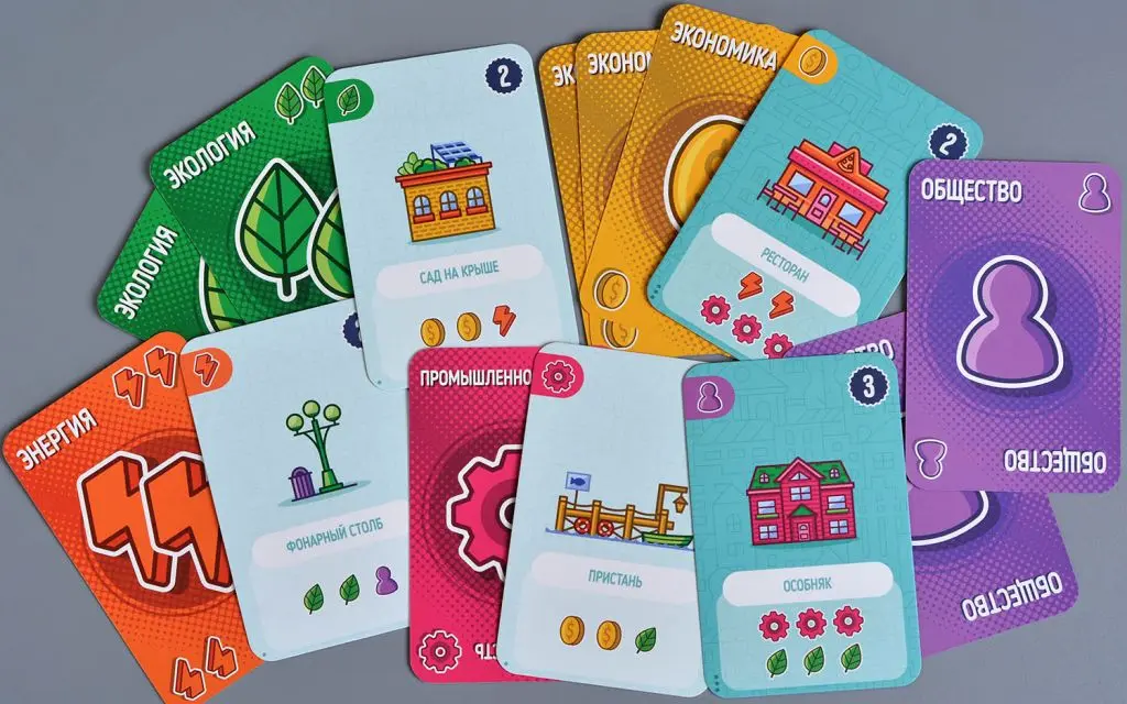 Будучи мэром, вы вправе распоряжаться ресурсами и делать это желательно очень грамотно. Пойти ва-банк и соорудить памятник, или поднакопить сбережений для постройки небоскрёба – решать вам! Внутри коробки более 150 двухсторонних карт сооружений и ресурсов, что открывает огромный простор для творчества и моря комбинаций.