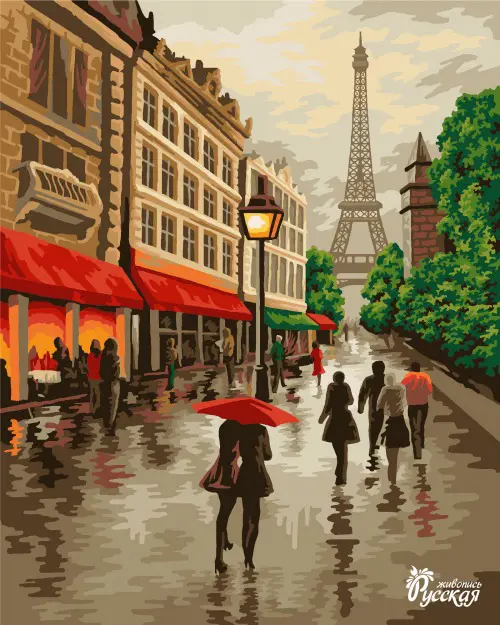 Картина по номерам на холсте 40х50 на подрамнике. "Прогулка под дождем"