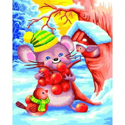 Картина по номерам на холсте 40х50 на подрамнике. "Счастливый мышонок"