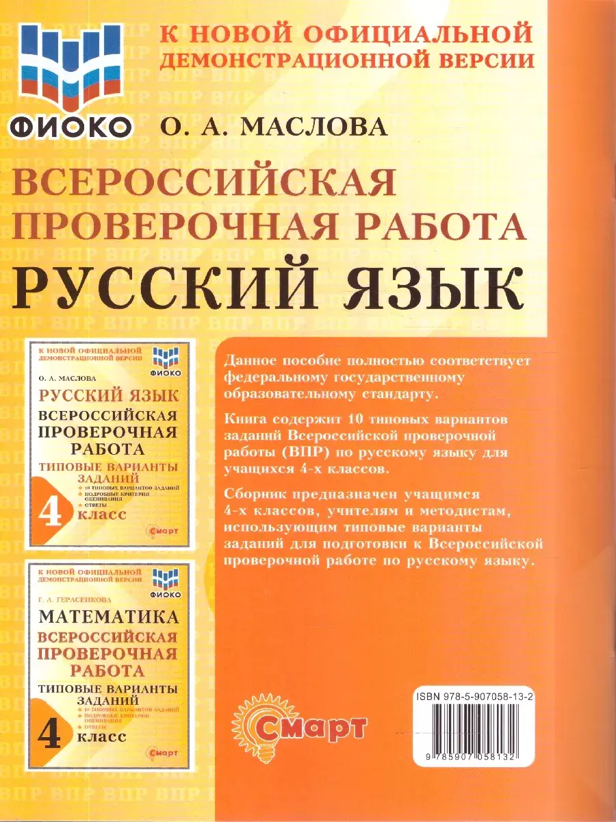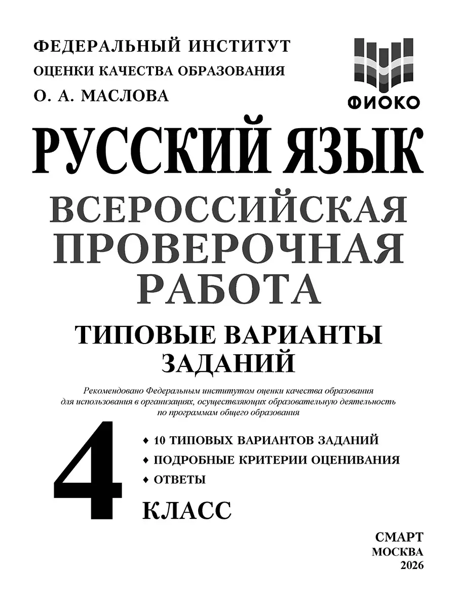 Всероссийская проверочная работа. (ВПР). Русский язык. 4 класс. 10 типовых вариантов заданий. ФИОКО
