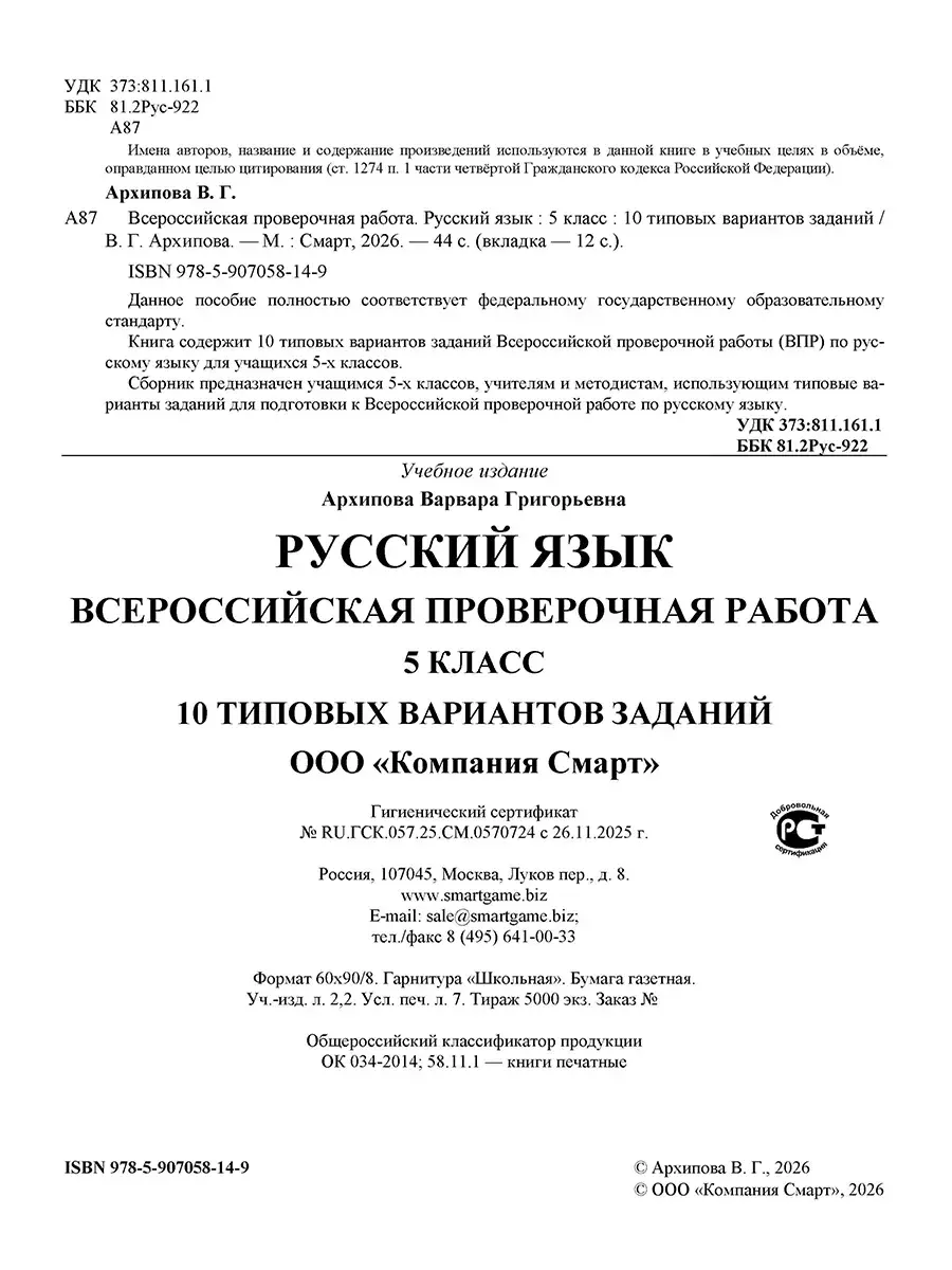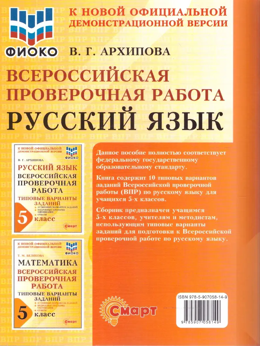 ВПР 5 класс русский язык. Пособие полностью соответствует федеральному государственному образовательному стандарту. Содержит 10 типовых вариантов заданий Всероссийской проверочной работы (ВПР) по русскому языку для учащихся 5-х классов. Сборник предназначен учащимся 5-х классов, учителям и методистам, использующим типовые варианты заданий для подготовки к Всероссийской проверочной работе по русскому языку. В одном варианте 5 заданий.