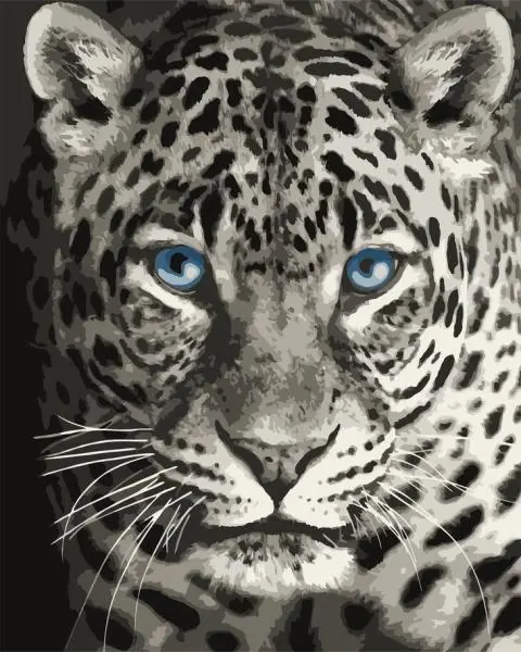 Картина по номерам на холсте 40х50 на подрамнике. "Голубоглазый леопард"