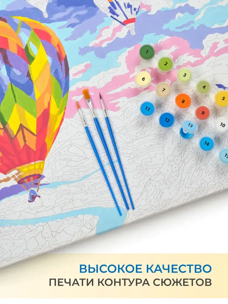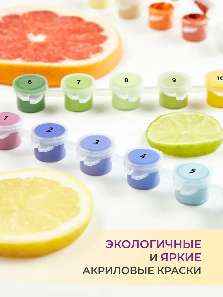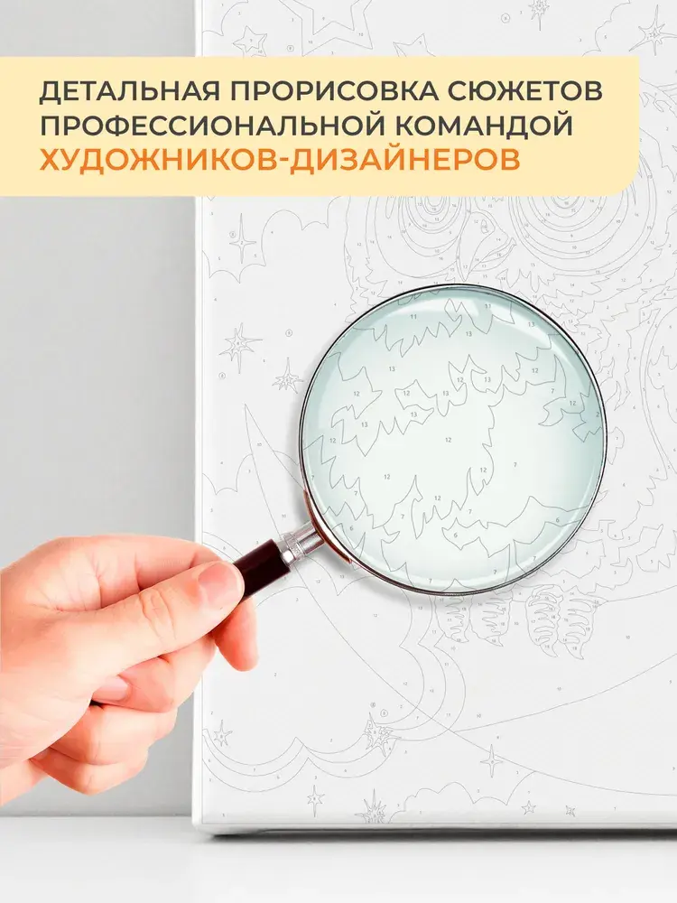Набор для росписи по номерам позволит любому желающему приобщиться к искусству живописи. А готовый шедевр станет эффектным украшением интерьера или отличным подарком ценителю прекрасного. Процесс росписи прост. Рисунок разделён на множество мелких фрагментов, на каждом указано число. Оно соответствует цвету, которым нужно заполнить данный участок. В набор входят все необходимые оттенки красок. Состав набора: грунтованный холст, деревянный подрамник, комплект пронумерованных акриловых красок, набор кистей из эластичного нейлонового волокна, контрольный лист с нанесённой схемой, защитный лак.
