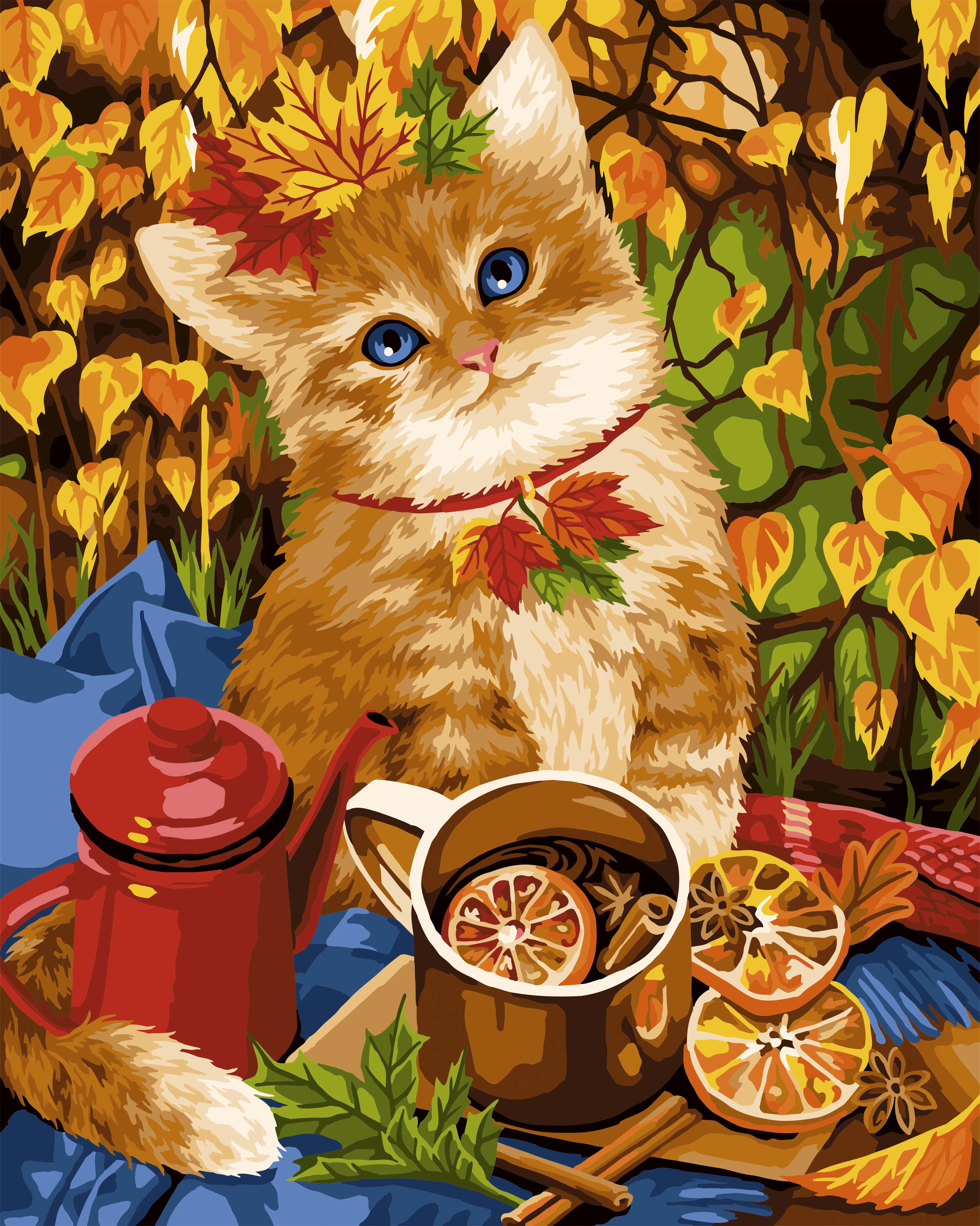 Картина по номерам на холсте 40х50 на подрамнике. "Рыжий котёнок"