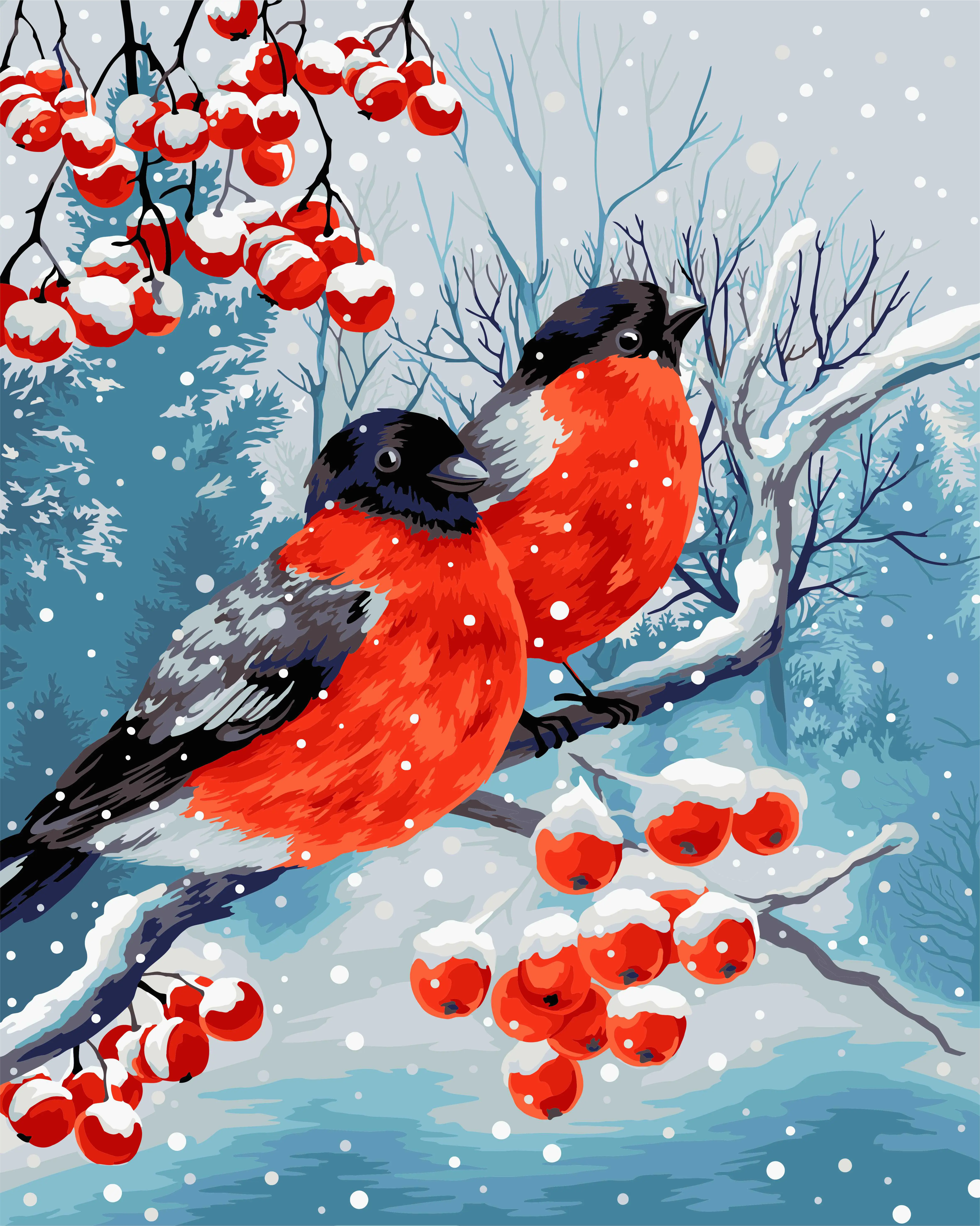 Картина по номерам на холсте 40х50 на подрамнике. "Снегири"