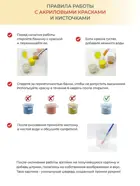 Набор для рисования по номерам позволит любому желающему приобщиться к искусству живописи. А готовый шедевр станет эффектным украшением интерьера или отличным подарком ценителю прекрасного. Процесс росписи прост. Рисунок разделён на множество мелких фрагментов, на каждом указано число. Оно соответствует цвету, которым нужно заполнить данный участок. В набор входят все необходимые оттенки красок. Состав набора: грунтованный холст, деревянный подрамник, комплект пронумерованных акриловых красок, набор кистей из эластичного нейлонового волокна, контрольный лист с нанесённой схемой, защитный лак.