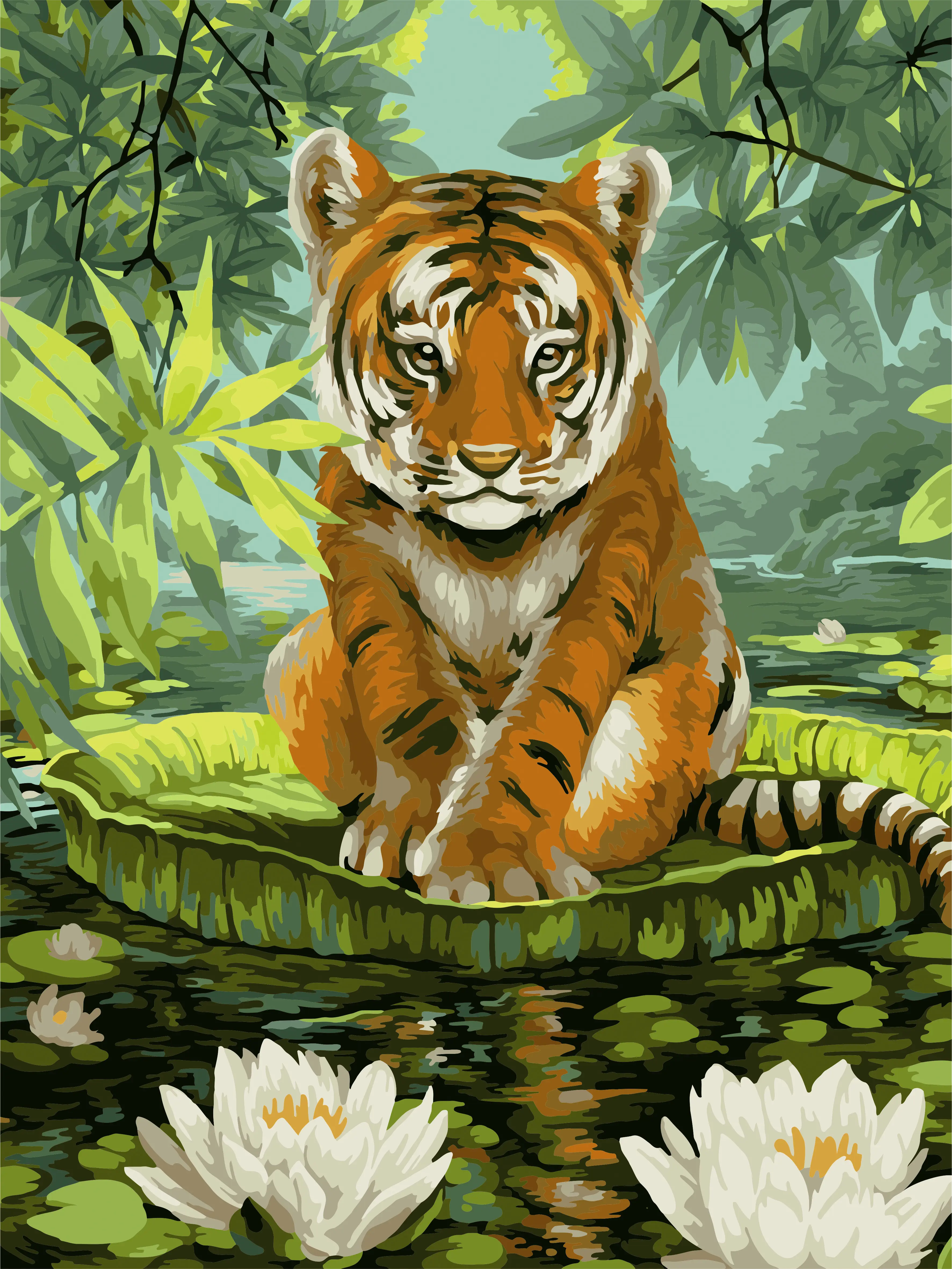 Картина по номерам на холсте 30х40 на подрамнике. "Тигренок на кувшинке"