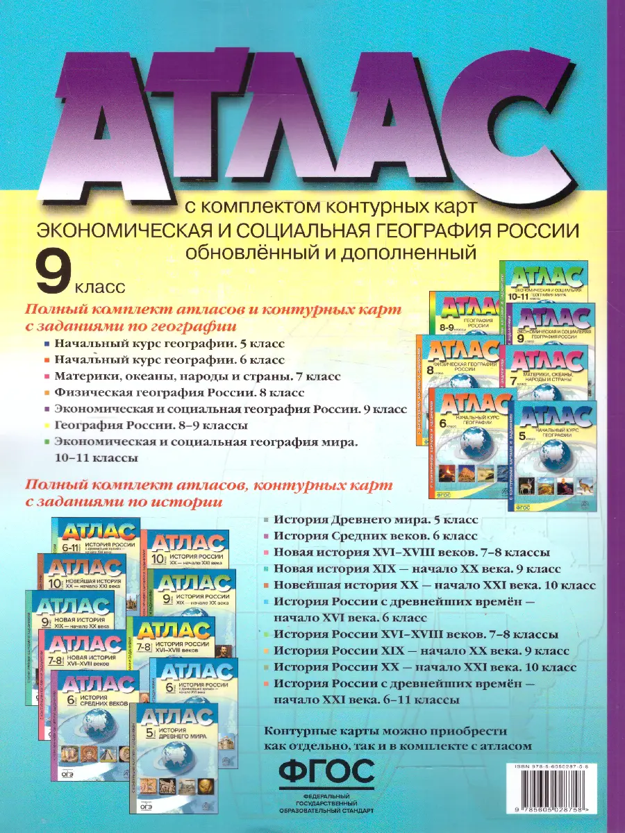 Комплект учебных пособий (атлас, контурные карты) соответствует ФГОС и может быть использован с любым учебником, включённым в Федеральный перечень учебников по курсу географии для 9 класса, государственные границы показаны на 2023 г.