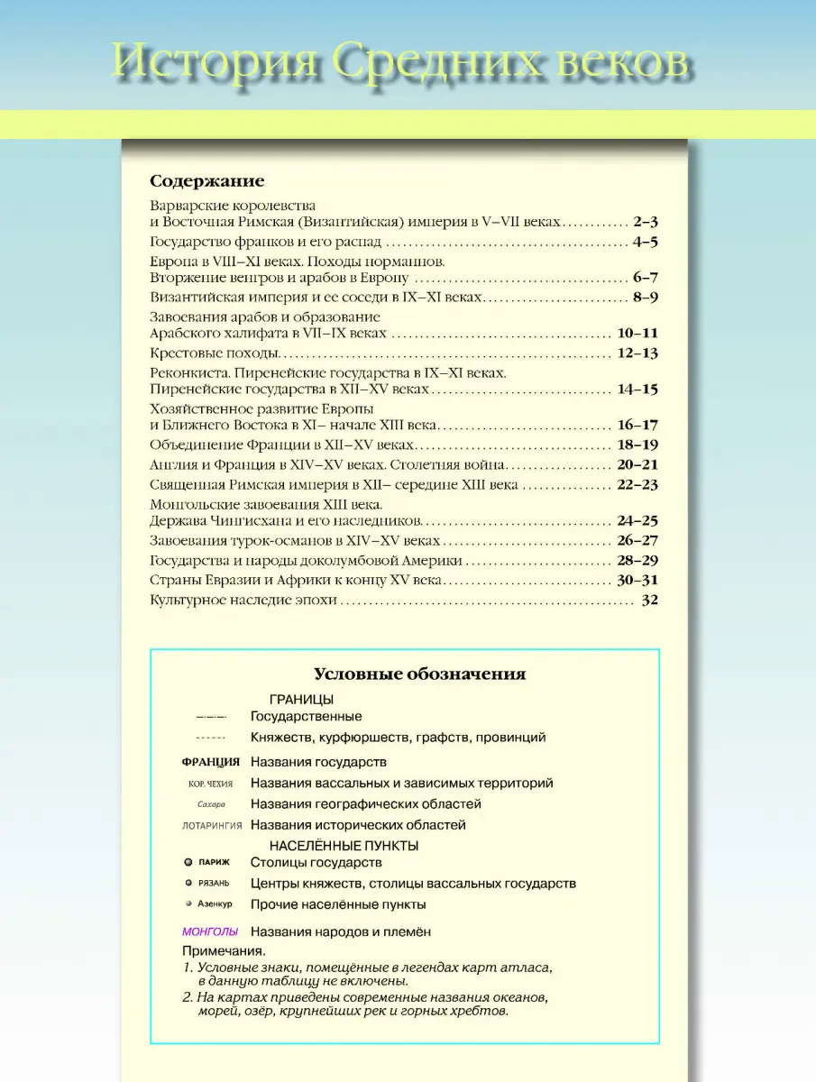 Комплект включает в себя атлас, контурные карты и контрольные проверочные задания. Атлас содержит подробные карты по изучаемым темам. Карты иллюстрируют и дополняют текст любого учебника по курсу "История Средних веков.".