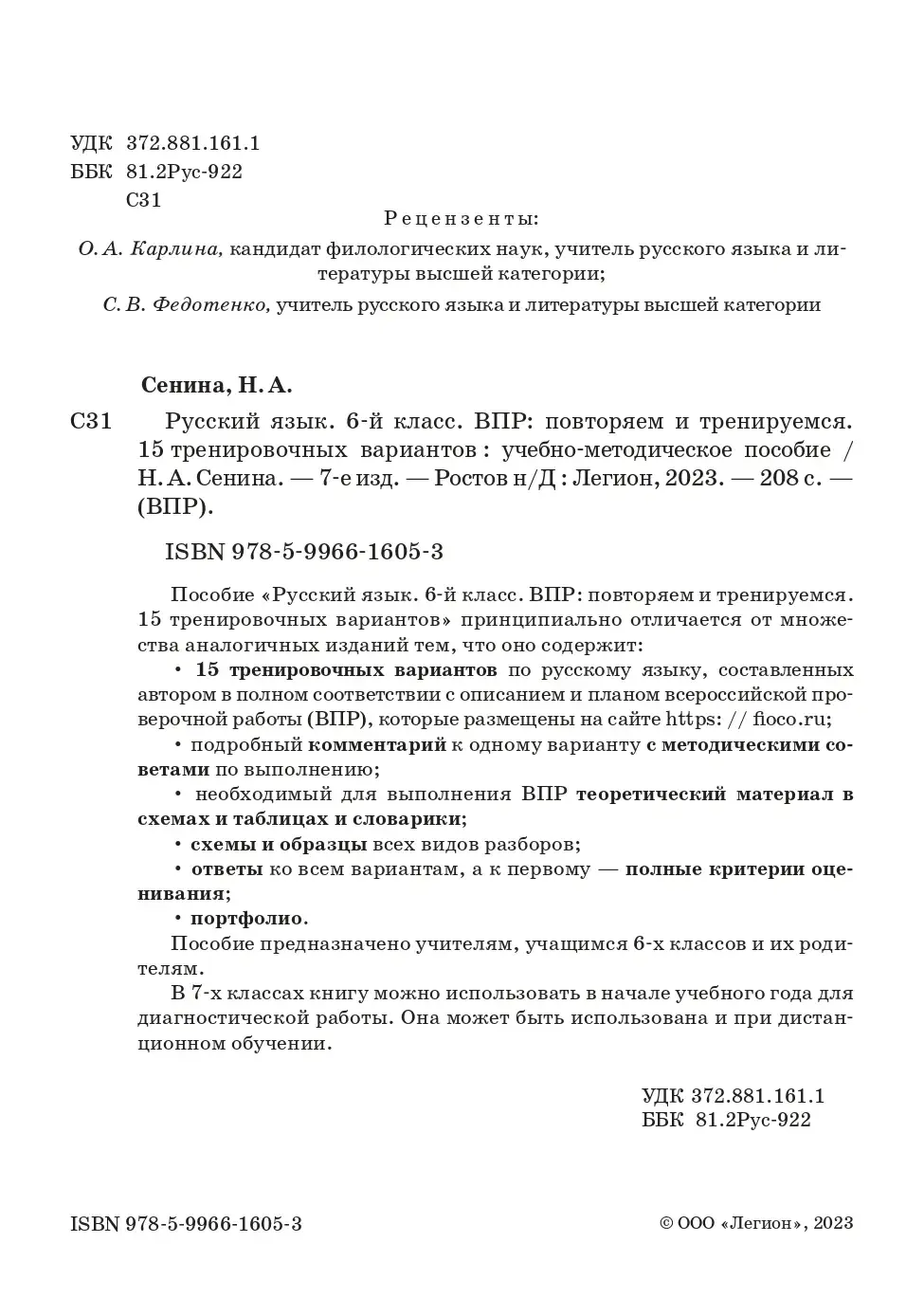 Пособие «Русский язык. 6-й класс. ВПР: повторяем и тренируемся. 15 тренировочных вариантов» принципиально отличается от множества аналогичных изданий тем, что оно содержит: