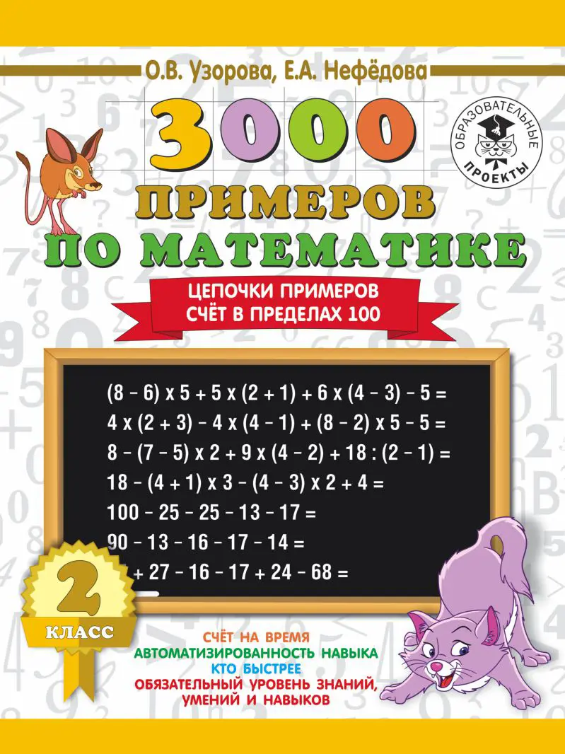 Математика. 2 класс. 3000 примеров по математике. Цепочки примеров. Счет в пределах 100