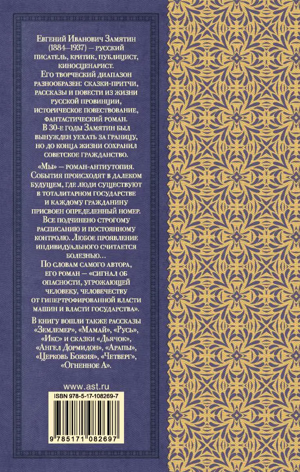 Евгений Иванович Замятин (1884-1937) — русский писатель, критик, публицист, киносценарист. Его творческий диапазон разнообразен: сказки-притчи, рассказы и повести из жизни русской провинции, историческое повествование, фантастический роман. В 30-е годы Е.И. Замятин был вынужден уехать за границу, но до конца жизни сохранил советское гражданство.