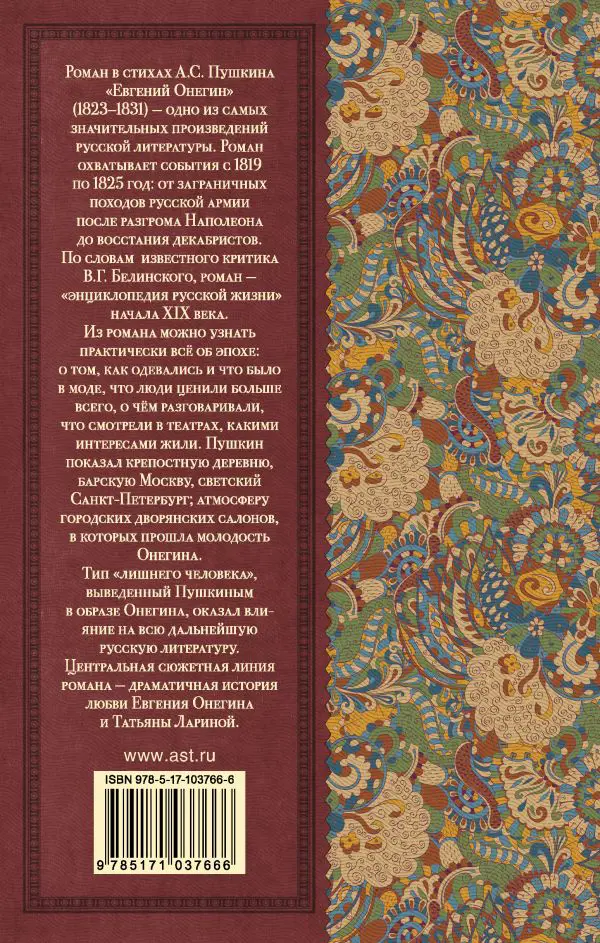 Роман в стихах А.С. Пушкина "Евгений Онегин" (1823–1831) – одно из самых значительных произведений русской литературы. Роман охватывает события с 1819 по 1825 год: от заграничных походов русской армии после разгрома Наполеона до восстания декабристов.
