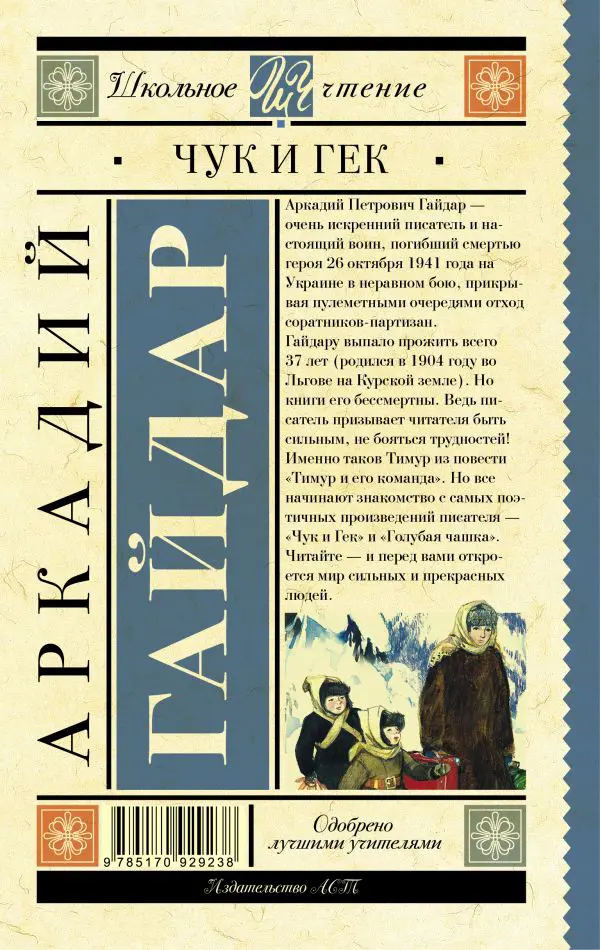 В книгу вошли лучшие произведения Аркадия Гайдара (1904—1941) для детей: "Голубая чашка", "Четвёртый блиндаж", "Чук и Гек" и "Тимур и его команда".