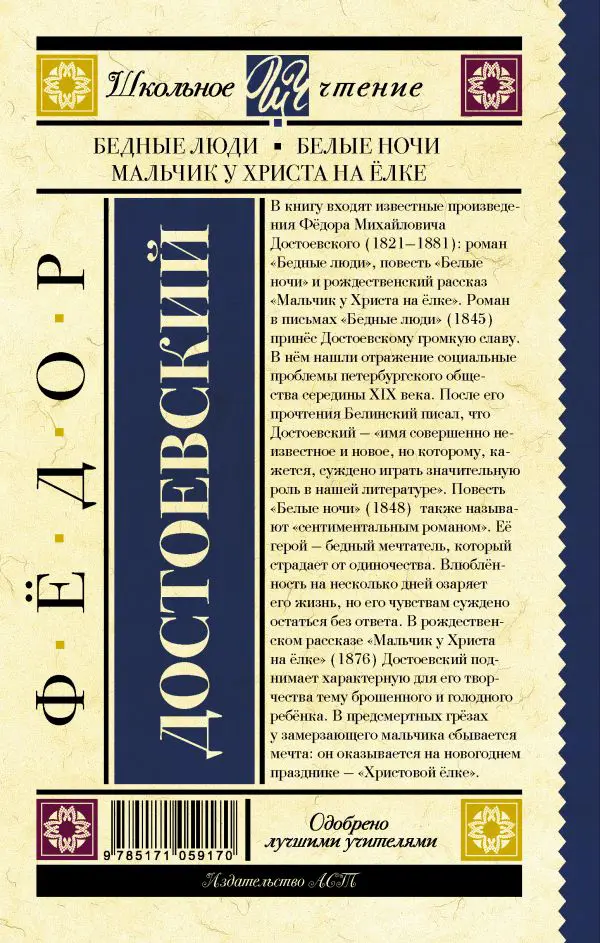 В книгу входят известные произведения Фёдора Михайловича Достоевского (1821-1881): роман "Бедные люди", повесть "Белые ночи" и рождественский рассказ "Мальчик у Христа на ёлке".