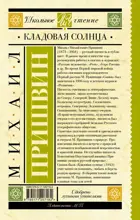 Сказака-быль "Кладовая солнца" (1945) учит читателя понимать, любить и беречь родную природу. В сборник также вошли рассказы М. Пришвина, написанные в разные годы для детей.