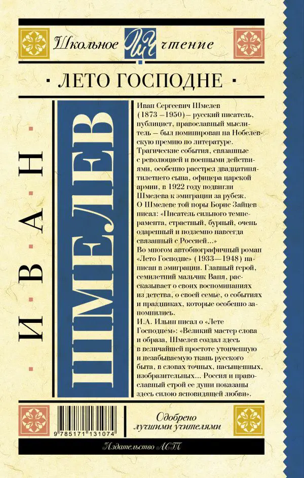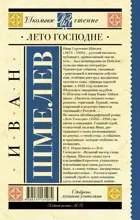 И.А. Ильин писал о "Лете Господнем": "Великий мастер слова и образа, Шмелев создал здесь в величайшей простоте утонченную и незабываемую ткань русского быта, в словах точных, насыщенных, изобразительных… Россия и православный строй ее души показаны здесь силою ясновидящей любви".