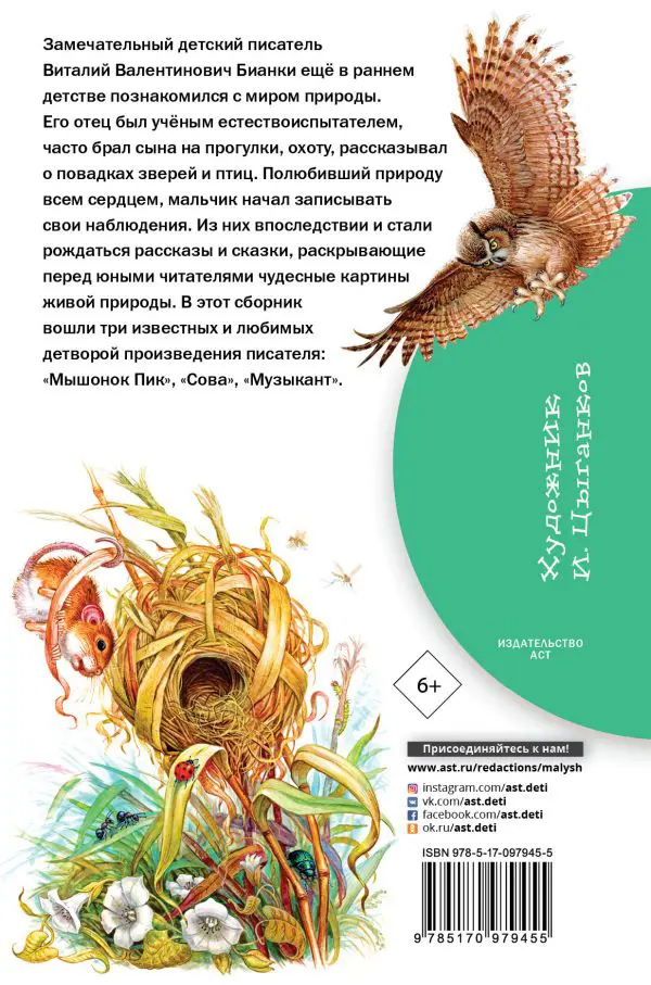 В сборник "Мышонок Пик. Сказки" замечательного детского писателя и знатока родной природы Виталия Валентиновича Бианки вошли три его известных произведения: сказки "Мышонок Пик" и "Сова", а также рассказ "Музыкант". Произведения писателя помогают ребёнку увидеть то, что скрыто от беглого взгляда, понять, насколько сложен, хрупок и прекрасен мир природы.