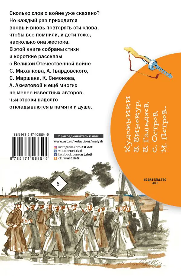 В книге "Стихи и рассказы о войне" собраны произведения В. Лебедева-Кумача, К. Симонова, С. Михалкова, Е. Евтушенко и других известных поэтов и писателей о Великой Отечественной войне, о победе, доставшейся нашему народу дорогой ценой. Стихи, песни и короткие рассказы стали невольными свидетелями событий военных лет; благодаря им современный читатель не только узнает исторические подробности, но и эмоционально сопереживает их с героями литературных произведений.