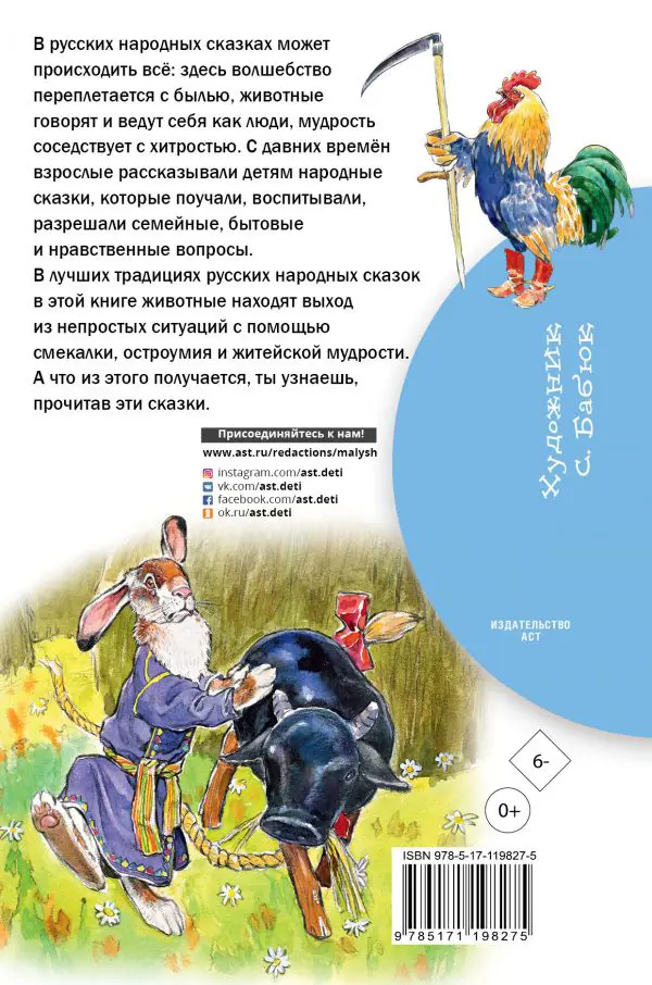 В книге собраны русские народные сказки про животных: "Волк и козлята", "Заяц-хвастун", "Зимовье зверей" и другие. Персонажи этих сказок научат юного читателя отличать хитрость от смекалистости, осторожность от трусости, храбрость от глупости и на собственном примере покажут, что может получиться, если начинать дело, не подумав как следует.