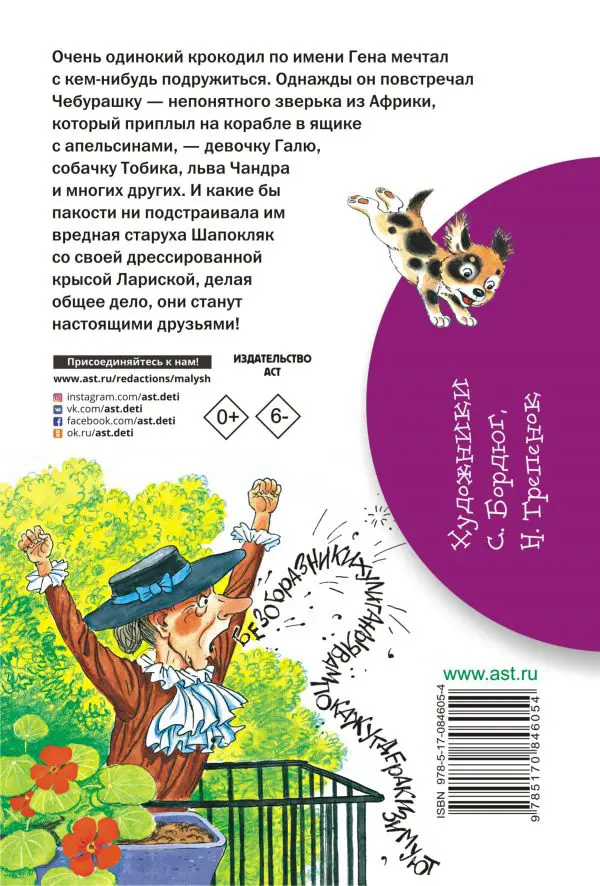 В новой книге серии "Библиотека начальной школы" юные читатели найдут замечательную сказочную повесть Э. Успенского о том, как очень одинокий крокодил по имени Гена нашёл настоящих друзей. Среди них Чебурашка — непонятный зверёк из Африки, который приплыл на корабле в ящике с апельсинами, девочка Галя, собачка Тобик, лев Чандр и многие другие. И всё бы хорошо, но вредная старуха Шапокляк со своей дрессированной крысой Лариской подстраивает им разные пакости. Чем же закончатся приключения?