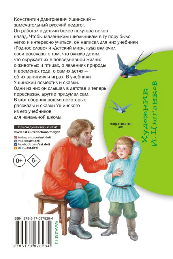 Произведения замечательного русского педагога и писателя К.Д. Ушинского (1824–1870) посвящены тому, что близко детям, что окружает их в жизни: о больших и маленьких тайнах огромного мира, о человеке-труженике и его делах.